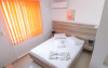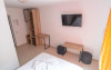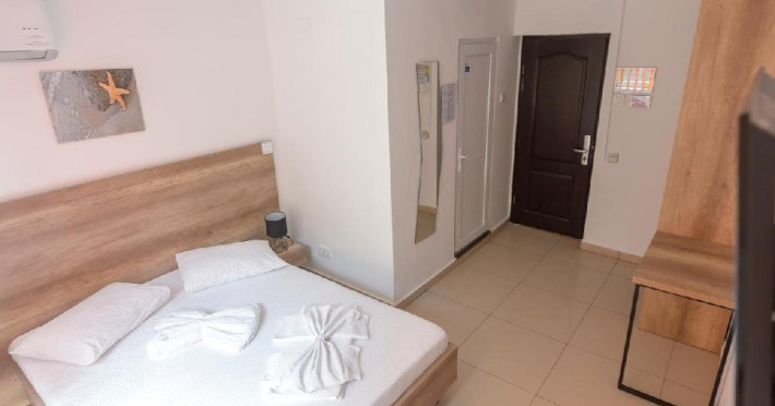 Camerele sunt dotate cu mobilier nou, pat matrimonial (160/200), baie proprie cu dus, AC, TV, minibar, internet.