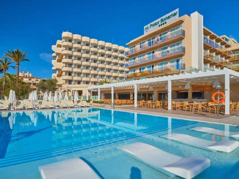 Hotelul Protur Bonamar este destinat vacantelor pentru adulti si este situat la aproximativ 50 de metri de plaja. In apropiere se afla baruri si restaurante. Hotelul are aer conditionat, receptie 24h, Wi-Fi, gradina, piscina exterioara cu sezlonguri, terasa pentru plaja pe acoperis, piscina interioara, restaurant bufet cu terasa, bar la piscina, darts, muzica live.Alte informatii: