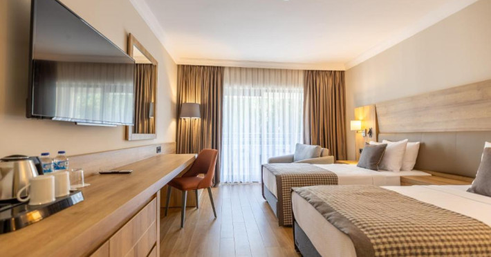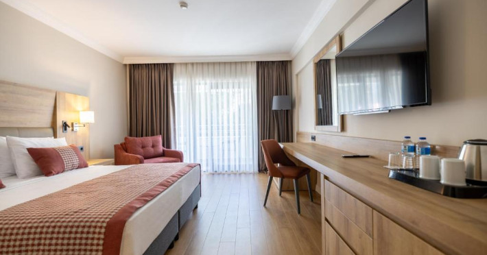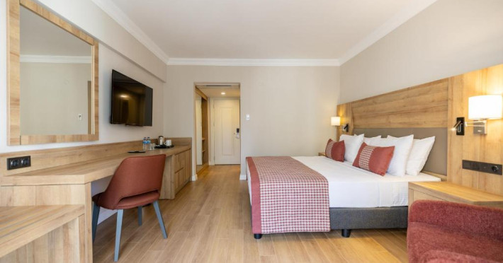 Poziționarea centrală a hotelului permite accesul facil la numeroase restaurante, magazine și puncte de interes din Kusadasi. Personalul receptiei, disponibil 24/7, vă stă la dispoziție cu informații turistice și servicii de concierge pentru a vă face șederea cat mai plăcută.