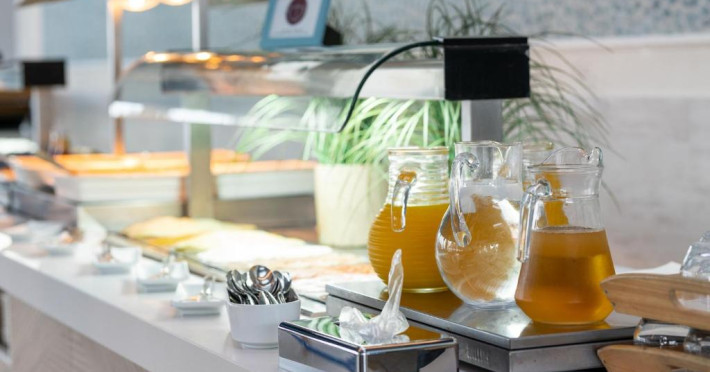 Restaurantul servește o gamă de mancăruri internaționale și din insulele Canare. Puteți să vă relaxați pe terasa hotelului, cu șezlonguri și vedere la portul de agrement. Hotelul are bar langă piscină, unde puteți să savurați băuturi și gustări.