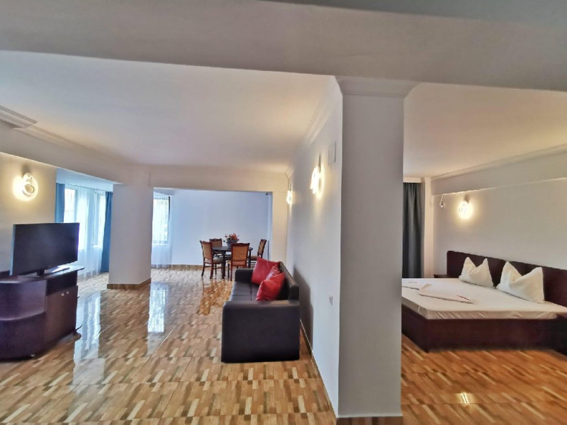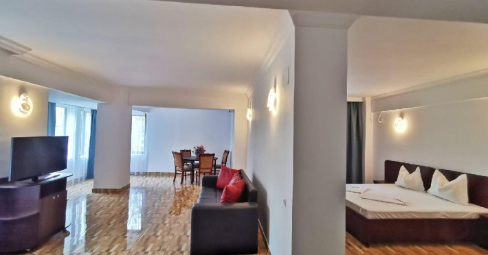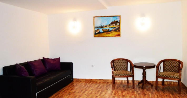 - 6 Apartamente: dormitor cu pat matrimonial si living cu canapea extensibila. Capacitate maxima 4 adulti.