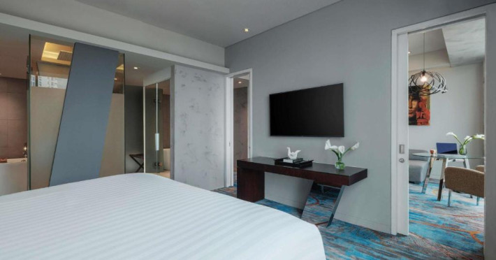 Oferind camere cu ferestre din podea pană in tavan și duș cu efect de ploaie, Pullman Jakarta Central Park găzduiește un centru spa, facilități de fitness și o piscină in aer liber. Situat in cartierul Podomoro City Super Block, se află la 25 de minute de mers cu mașina de Aeroportul Internațional Soekarno-Hatta. Accesul WiFi este gratuit in intreaga proprietate.