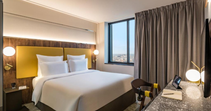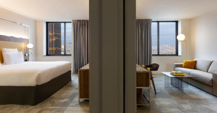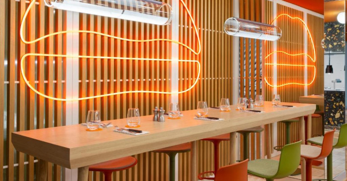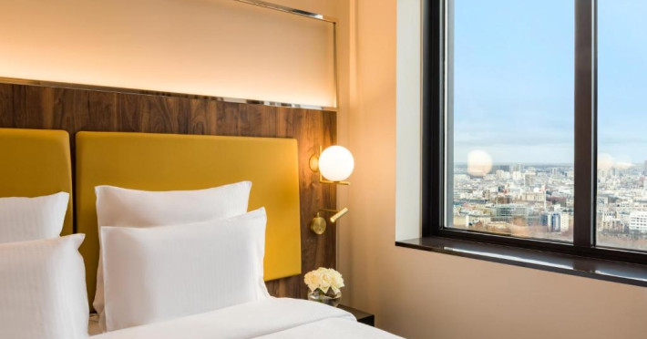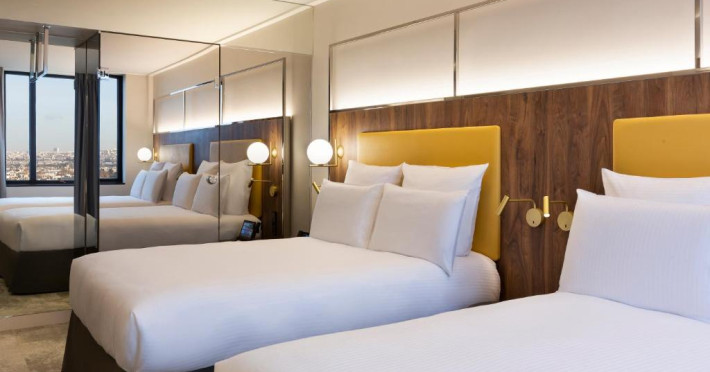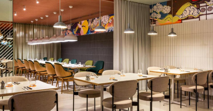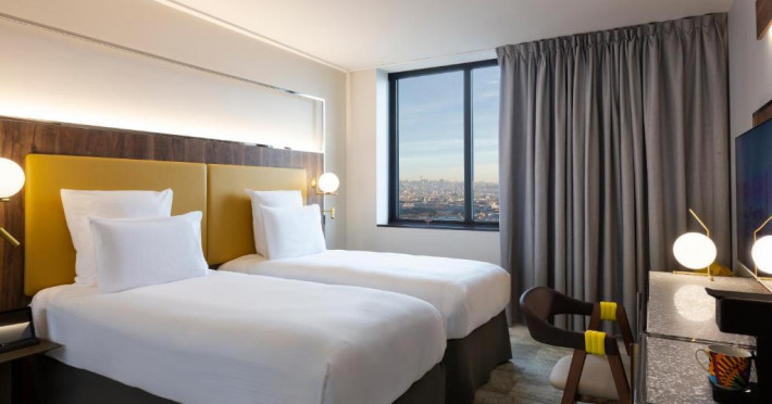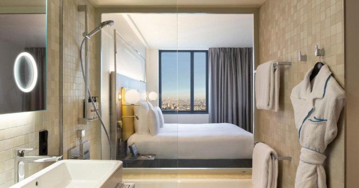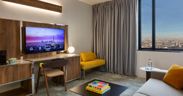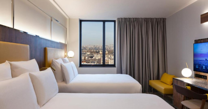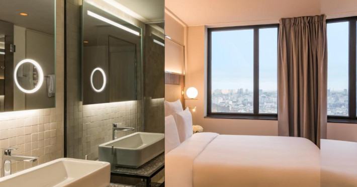 Restaurantul Fi'lia servește mancăruri italiene tradiționale, iar restaurantul Umami Burger Paris oferă preparate internaționale. Oaspeții pot să se relaxeze și să savureze o băutură la 2 baruri diferite. Este disponibilă și o cafenea, care pregătește focaccia și cocktailuri. Skybar este situat la etajul 32 si oferă vedere panoramică la Paris (disponibil doar pe bază de rezervare online).