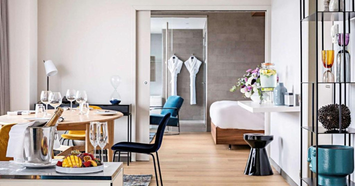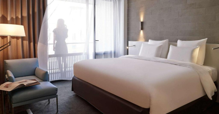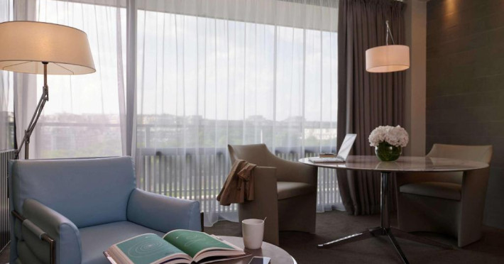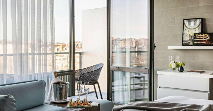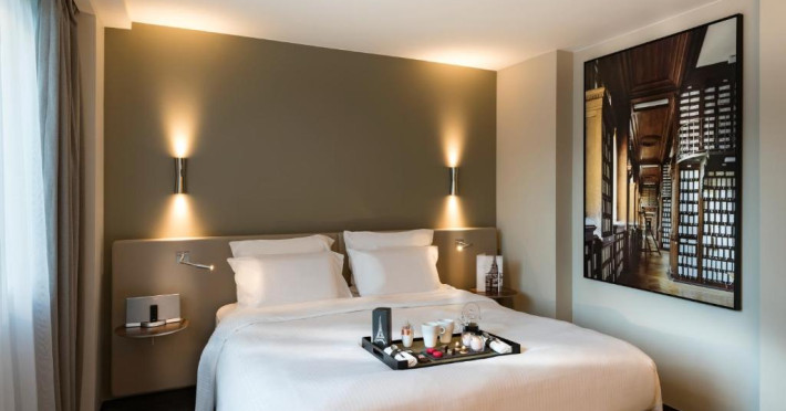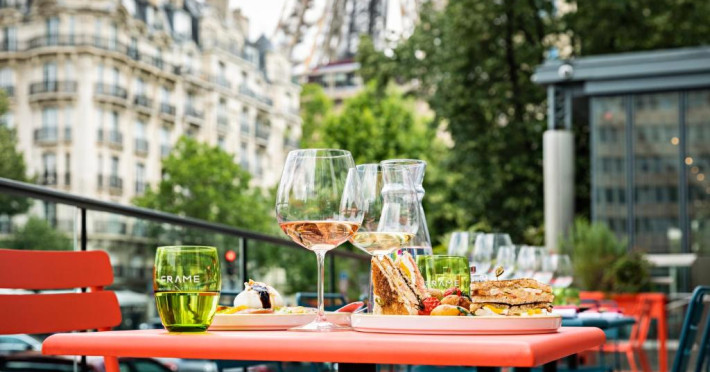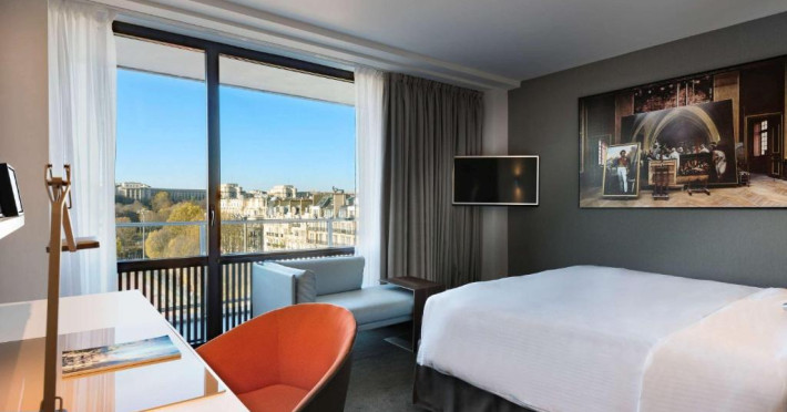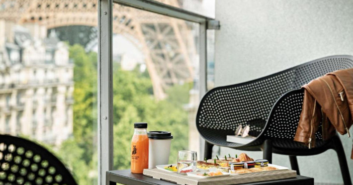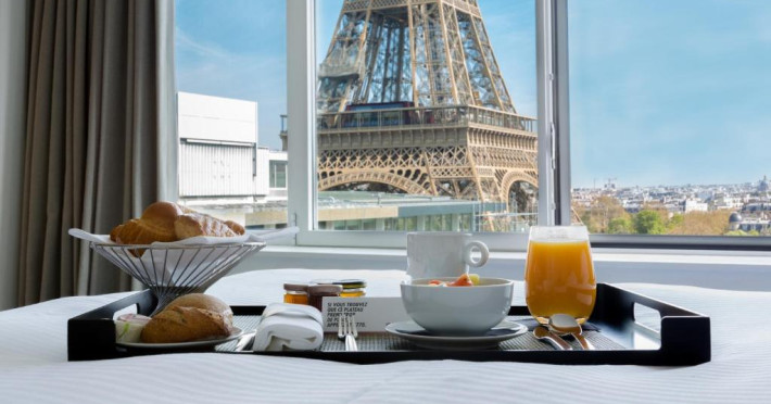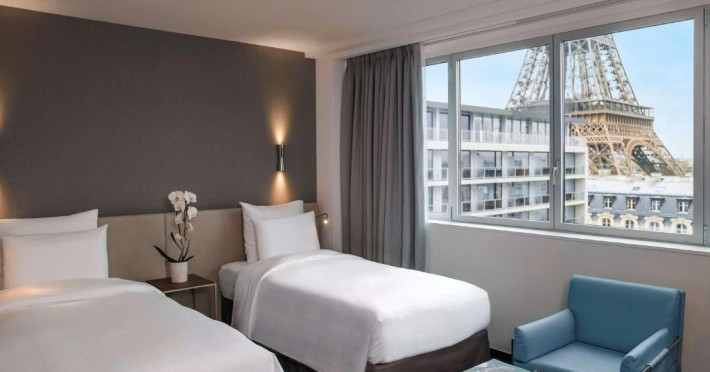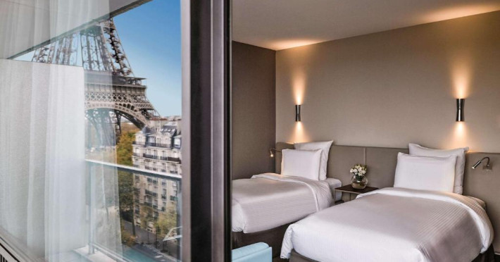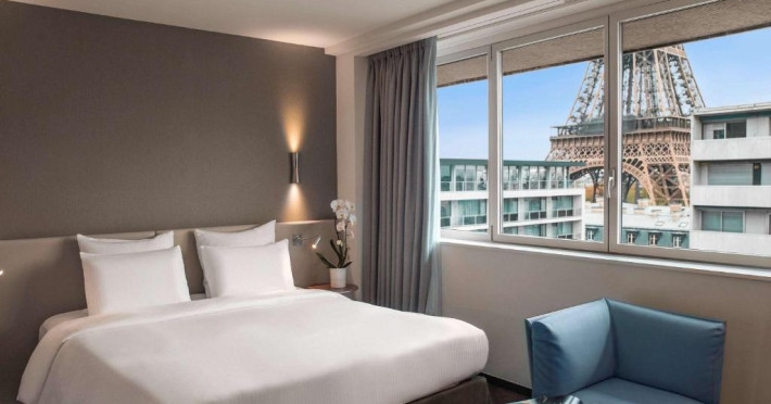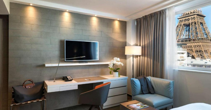 Camerele sunt luminoase, decorate modern si oferă vedere panoramică la Paris. De asemenea, includ WiFi gratuit, stație pentru andocare iPod și TV cu ecran plat cu acces gratuit la cele mai recente filme. Majoritatea camerelor oferă balcon, iar unele au vedere superbă la Turnul Eiffel sau la grădină.
