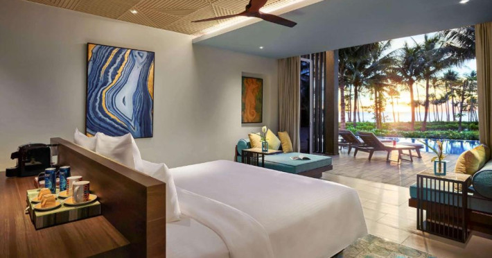 Unitățile de la acest complex includ climatizare, o zonă de relaxare, un televizor cu ecran plat cu canale prin cablu, o cutie de valori și o baie proprie cu duș, articole de toaletă gratuite și un uscător de păr. Camerele sunt dotate cu un ibric electric, iar unele camere speciale se mandresc și cu un balcon sau vedere la mare views. La Pullman Phu Quoc Beach Resort, camerele au lenjerie de pat și prosoape.