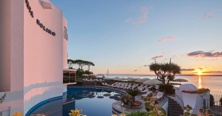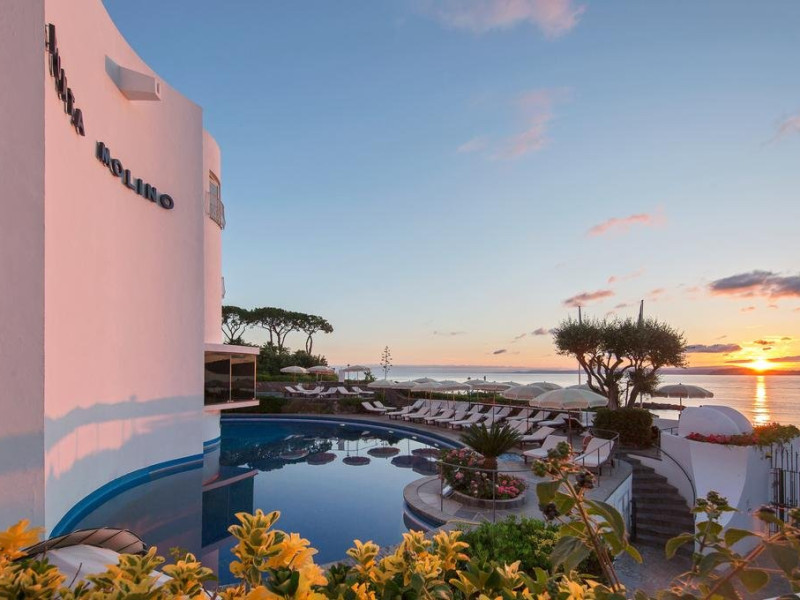 Descriere: Hotelul Punta Molino Beach Resort and Spa 5* este perfect pozitionat pentru acces facil atat la plaja cat si la centrul orasului.Hotelul Punta Mulino este alegerea ideala pentru o sedere relaxanta pe o insula binecuvantata cu izvoare termale.Localizare: la cateva minute de centrul localitatii Ischia, hotelul se afla deasupra plajei private proprii,dotata cu sezlonguri si umbrele de soare