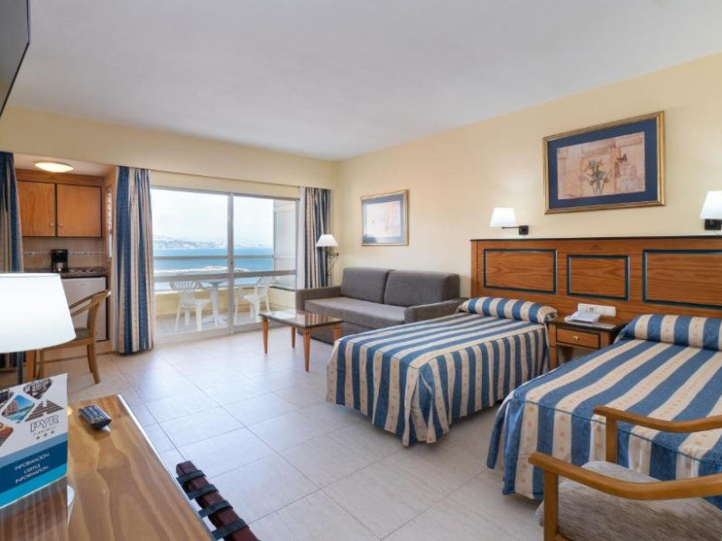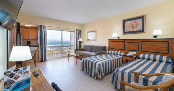 Dotari camere: Hotelul pune la dispozitia turistilor studiouri si apartamente dotate cu TV , aer conditionat, baie cu dus si uscator de par, chicineta complet utilata, sofa, balcon.