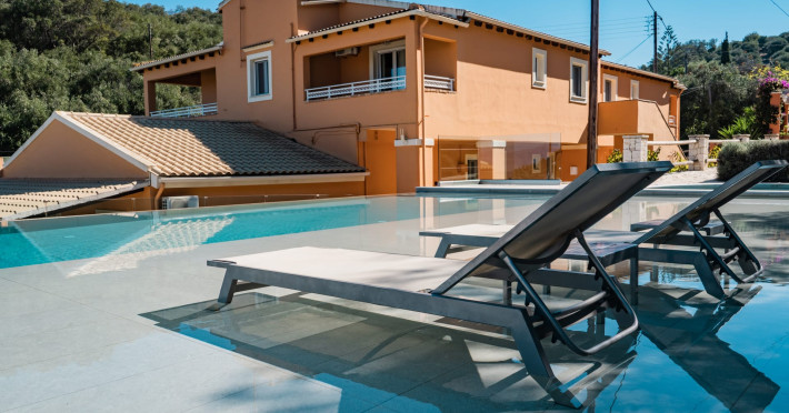 Pyramid City Apartments Accommodation: In total, the tourist settlement of Pyramid City Corfu features 9 rental apartments located in a modern apartment complex, with a garden, communal infinite swimming pool featuring three parts: a large rectangular pool with two different levels of depth, a jacuzzi and sunbeds with parasols , and a fully equipped barbecue area. Within walking distance, you will find the Pyramid Seaside facilities (playground, restaurant, beach bar and bar) and the surrounding beaches.Pyramid City Apartments Accommodation: In total, the tourist settlement of Pyramid City Corfu features 9 rental apartments located in a modern apartment complex, with a garden, communal infinite swimming pool featuring three parts: a large rectangular pool with two different levels of depth, a jacuzzi and sunbeds with parasols , and a fully equipped barbecue area. Within walking distance, you will find the Pyramid Seaside facilities (playground, restaurant, beach bar and bar) and the surrounding beaches.