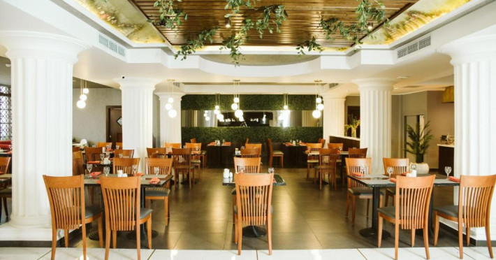 Hotelul Pyramisa Suites oferă o gamă de 4 restaurante, care servesc mancăruri variind de la bucătăria clasică egipteană și italiană pană la specialități indiene și chinezești. De asemenea, este disponibil un restaurant tip bufet internațional.