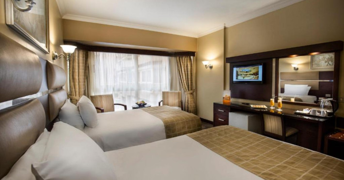 Fiecare cameră spațioasă de la Pyramisa Suites este dotată cu aer condiționat, TV, facilități pentru cafea și ceai și minibar. Baia privată este dotată cu articole de toaletă și uscător de păr.
