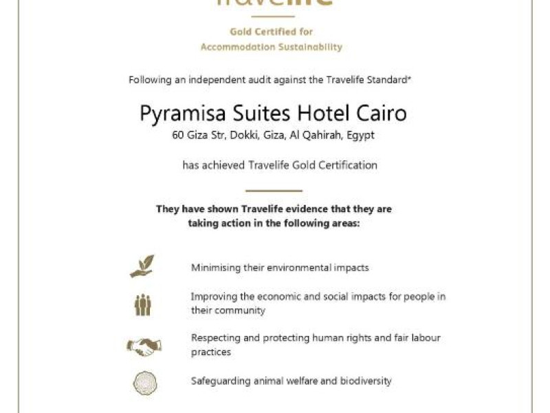 Stația de metrou Dokki, la doar 500 de metri de Pyramisa, face legătura cu 2 stații la Piața Tahrir. Muzeul Egiptean este la 5 minute de mers cu mașina de hotel, iar Piramidele din Giza sunt la 30 de minute de mers cu mașina.
