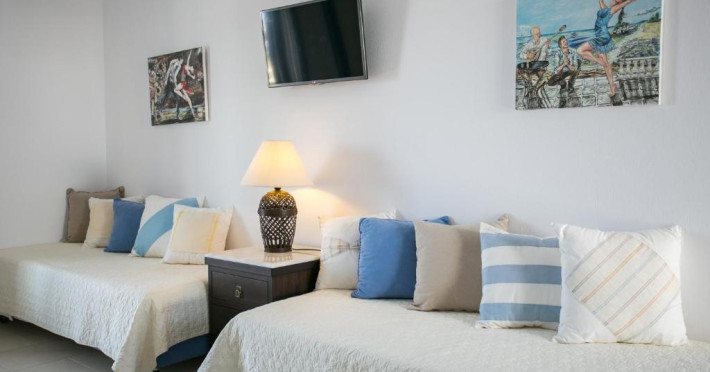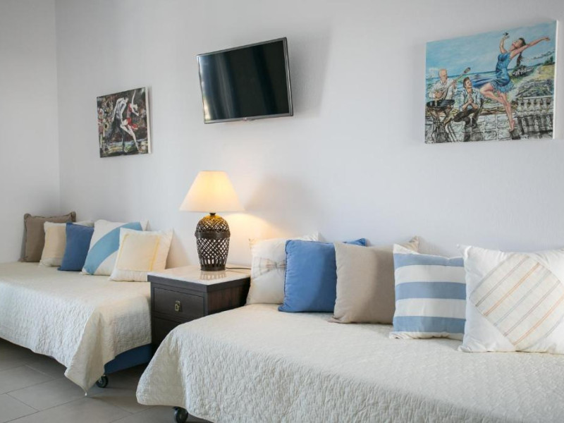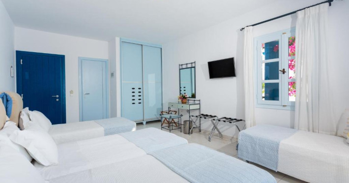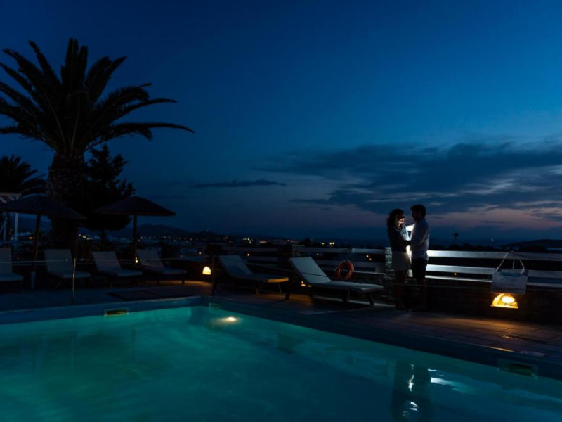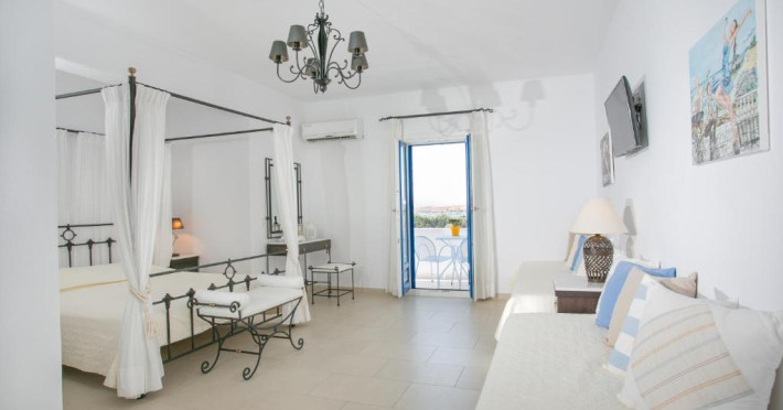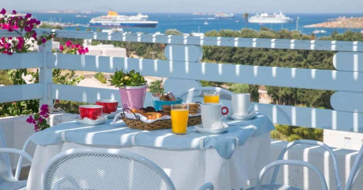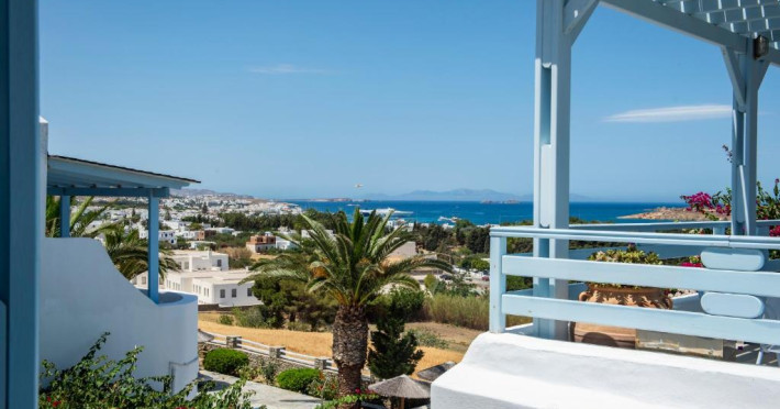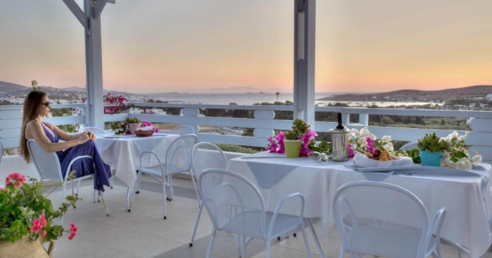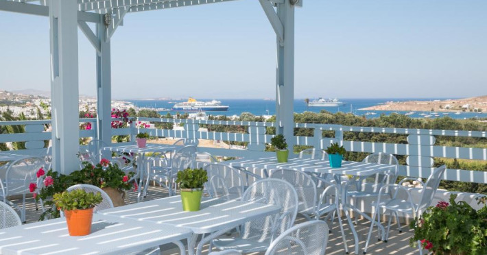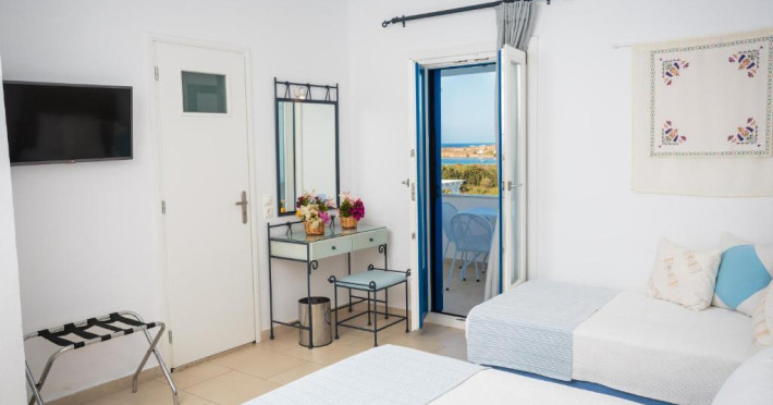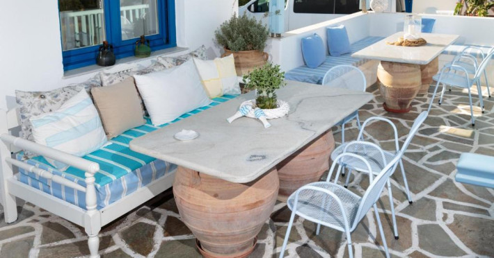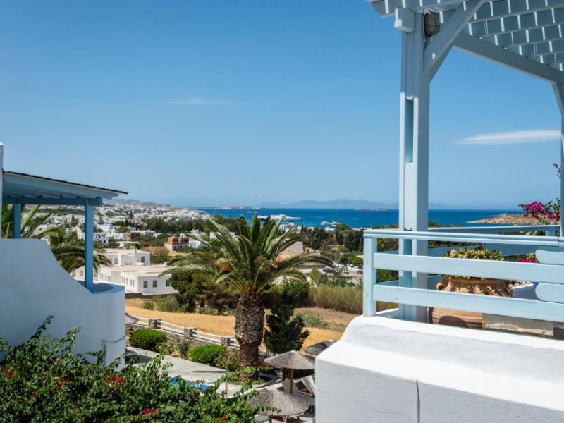 The blue-and-white Pyrgaki Hotel is situated on a small hill, overlooking the port of Parikia. It features sea-view rooms, an outdoor restaurant with a view of Parikia Town, the port and the sea.