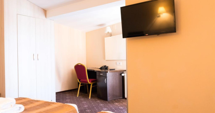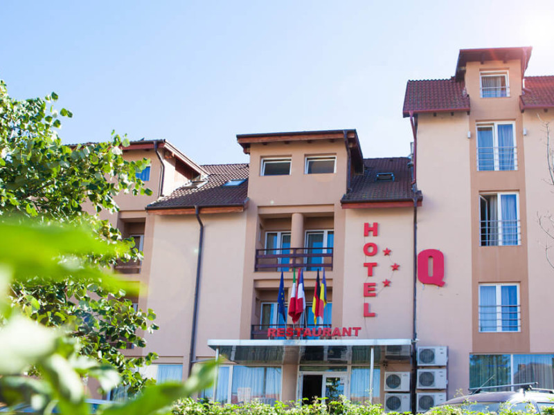 Hotel Q Brasov este amplasat intr-o zona linistita, la cateva minute de centrul vechi al orasului si de gara. Facilitati hotel: 46 camere duble deluxe, 1 camera single deluxe, 3 junior suite, lift, restaurant, bar, terasa, gradina, parcare, 2 sali de conferinte si evenimente (80 si 30 locuri). Facilitati camere: minibar, TV, grup sanitar propriu cu cabina de dus, uscator de par, cutie de valori, Wi-Fi, sistem electronic de inchidere si deschidere a usii. Unele camere au AC, iar o parte dintre acestea balcon.Datorita dinamicitatii domeniului disponibilitatea ofertelor se modifica de la un moment la altul. De aceea ofertele sunt valabile in limita locurilor disponibile. Agentia nu este responsabila pentru eventualele neconcordante care pot aparea intre informatiile privind tarifele si alte detalii din site si informatiile primite in agentie. In aceste cazuri vor avea prioritate, intotdeauna, informatiile primite in agentie.
