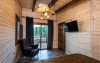 Bungaloul pentru 4 persoane, 2 camere, 2 bai, living, terasa. Bungalou este alctuit din doua dormitoare cu bai proprii, living comun cu TV, minibar, plus terasa de 50 mp.