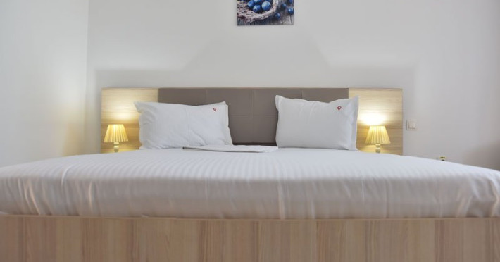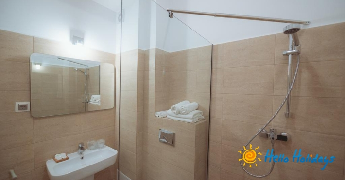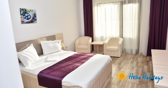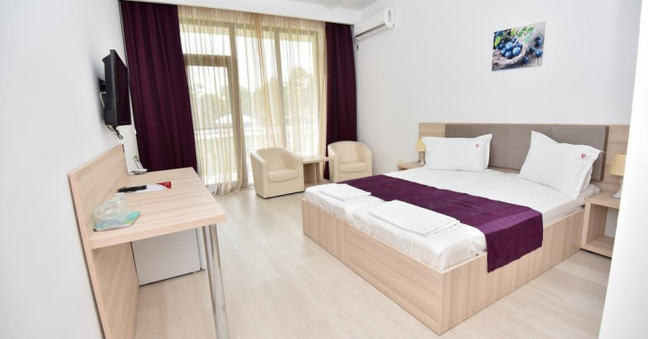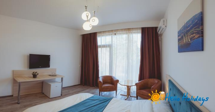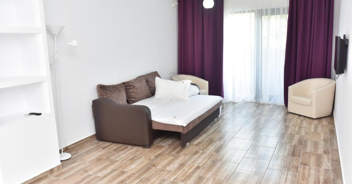 Apartamentele sunt formate din living cu canapea extensibila si dormitor cu pat matrimonial, balcon, aer conditionat, televizor, baie cu dus, internet wireless, parchet, minibar. Suprafata 35 mp.