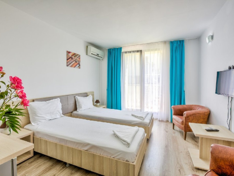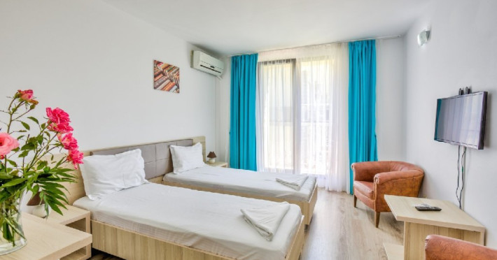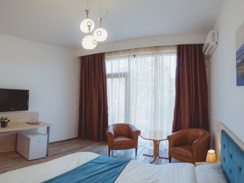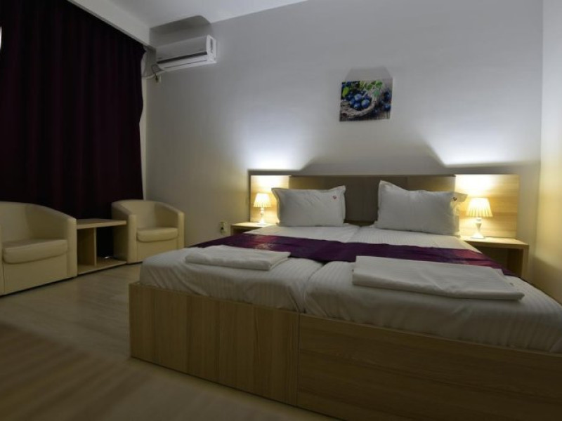 Hotelul dispune de 56 camere duble standard complet renovate. Acestea sunt dotare cu TV LCD, minibar, grup sanitar propriu (dus), aer conditionat, acces internet, balcon, parchet. Maxim: 2 persoane Aer conditionat televizor LCD internet wireless Hotelul dispune de 35 camere duble superioare, dotate cu mobilier nou , TV LCD, minibar, grup sanitar propriu (dus) , aer conditionat, acces internet, balcon, parchet. Maxim: 2 persoane Aer conditionat televizor LCD internet wireless Hotelul dispune de 7 apartamente standard renovate , formate din dormitor si living (canapea extensibila), grup sanitar propriu (dus) , minibar, aer conditionat, balcon, parchet, acces internet. Maxim: 4 persoane Aer conditionat televizor LCD internet wireless Hotelul dispune de 5 apartamente superioare, dotate cu mobilier nou, formate din dormitor si living (canapea extensibila) , grup sanitar propriu (dus) , minibar, aer conditionat, balcon, gresie, acces internet. Maxim: 4 persoane Aer conditionat televizor LCD internet wirelessDatorita dinamicitatii domeniului disponibilitatea ofertelor se modifica de la un moment la altul. De aceea ofertele sunt valabile in limita locurilor disponibile. Agentia nu este responsabila pentru eventualele neconcordante care pot aparea intre informatiile privind tarifele si alte detalii din site si informatiile primite in agentie. In aceste cazuri vor avea prioritate, intotdeauna, informatiile primite in agentie.