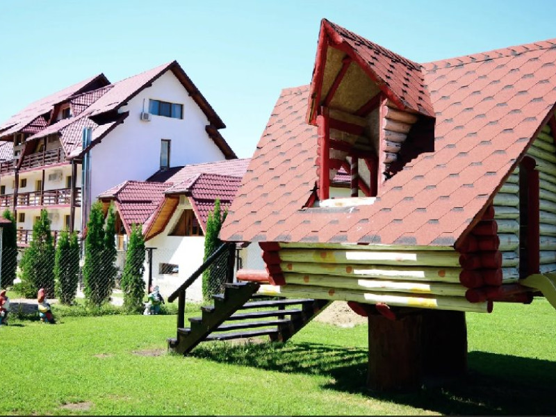 Cabana Q Chalet (la aproximativ 40 m de hotel): are 6 camere matrimoniale, cu baie proprie si living comun