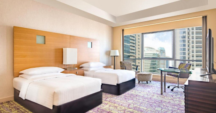 Toate camerele de la Qabila Hotel by Marriott sunt zonă de relaxare și chicinetă cu Westbay spa ceai și cafea. Băile includ articole de toaletă moderne. Hotelul Movenpick West Bay Doha respectă programul de dezvoltare durabilă Green Globe, economisind resursele naturale pentru a contribui la protecția mediului.