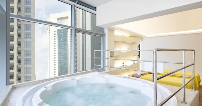 Centrul de wellness ultramodern oferă vedere la oraș și la Golful Persic. In plus, oaspeții se pot relaxa la piscina interioară.