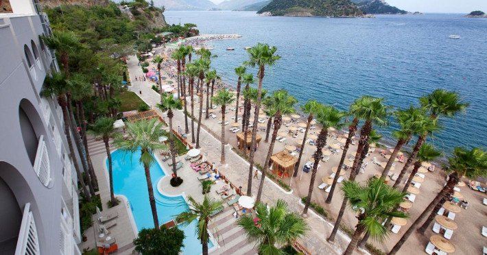 Localizare: Hotelul se află în apropiere de Plaja din Icmeler, la 49 km de Aeroportul Dalaman. Facilități hotel: piscina exterioara, acces imediat la plajă, camere de familie, WiFi gratuit inclus, transfer de la și/sau la aeroport, spa și centru de wellness, parcare gratuită, sală de fitness, bar, zonă de plajă privată. Dotări camere: balcon, vedere la grădină, aer condiționat, baie privată, TV cu ecran plat, terasă, Minibar. Servicii contra cost: serviciu de transfer, serviciu de curățătorie și călcătorie, snorkelling, scufundări, facilități sporturi nautice, pescuit, echipament tenis, biliard, masaj, sală fitness, spa și centru wellness, saună, jacuzzi. IMPORTANT: Descrierea hotelului se bazează pe detaliile disponibile la momentul pregătirii tarifelor pentru sezonul turistic ce urmează a se desfășura și are caracter pur informativ. Hotelul poate aduce modificări de structură, denumiri camere, tip servicii incluse/neincluse și altele, fără a notifica în prealabil. Pentru informațiile oficiale vă rugăm să consultați website-ul hotelului.Datorita dinamicitatii domeniului disponibilitatea ofertelor se modifica de la un moment la altul. De aceea ofertele sunt valabile in limita locurilor disponibile. Agentia nu este responsabila pentru eventualele neconcordante care pot aparea intre informatiile privind tarifele si alte detalii din site si informatiile primite in agentie. In aceste cazuri vor avea prioritate, intotdeauna, informatiile primite in agentie.