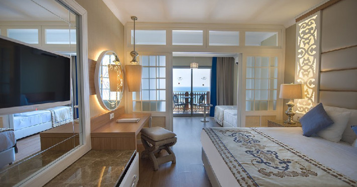 Descriere: Hotelul a fost deschis in 2014, pe o suprafata de 20.000 mp.Localizare: Hotelul este situat pe plaja, la aproximativ 12 km distanta fata de centrul orasului Alanya si aproximativ 114 km de Aeroportul International Antalya.