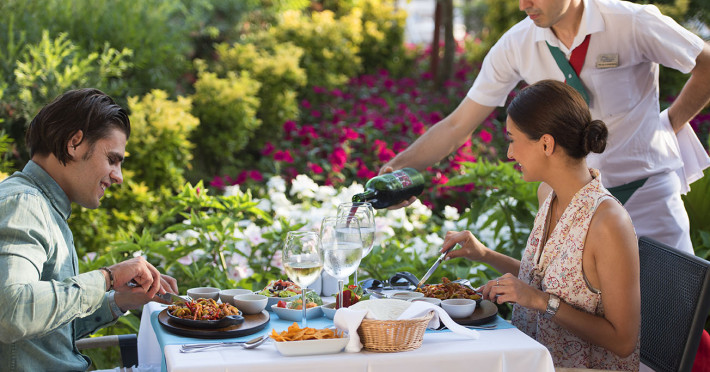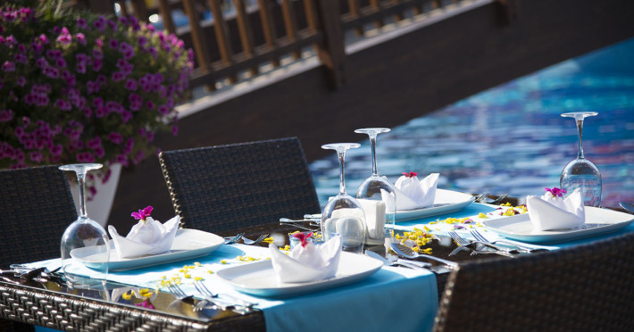 La Quattro Beach Spa & Resort oaspeții au la dispoziție 4 restaurante unde pot savura mâncăruri delicioase, în stil bufet sau à la carte. Preparate din bucătăria internațională, italiană, precum și preparate pescărești așteaptă să fie degustate în fiecare zi la micul dejun, prânz și cină. Masa poate fi servită atât în interior, cît si în aer liber, pe terasă, în funcție de vreme. Oaspeţii pot avea diverse băuturi răcoritoare sau alcoolice la bar. De asemenea , în cadrul proprietății, există cafenea și snack bar ideale pentru o gustare rapidă.