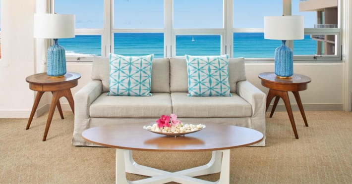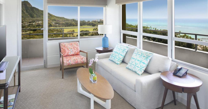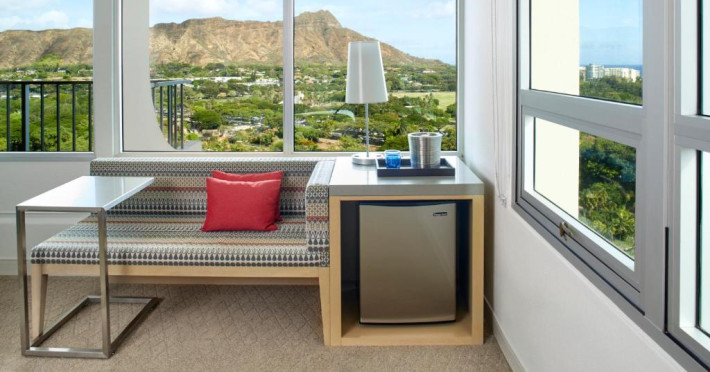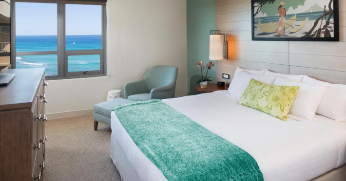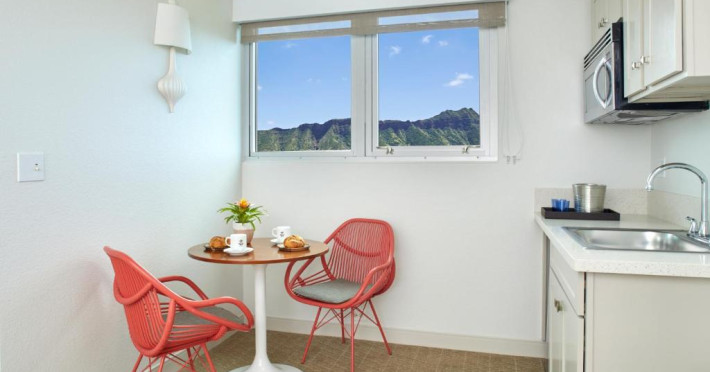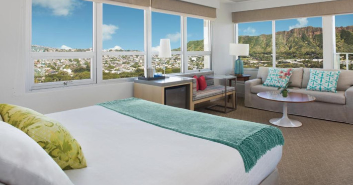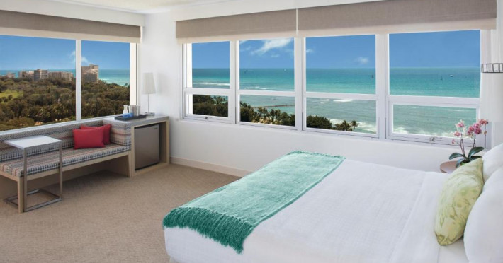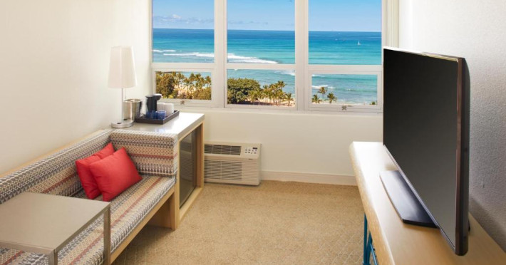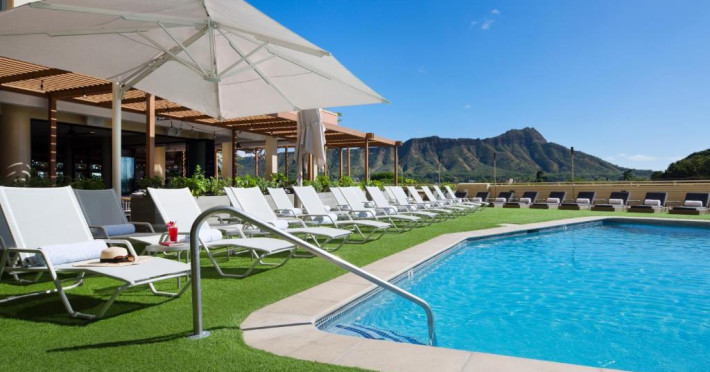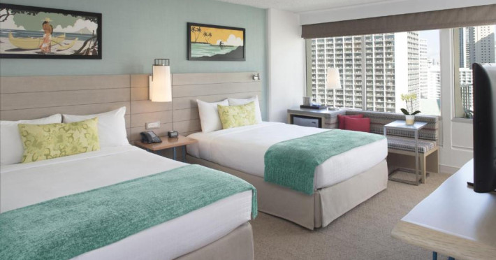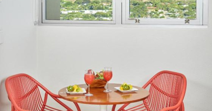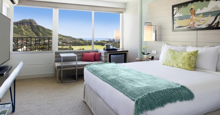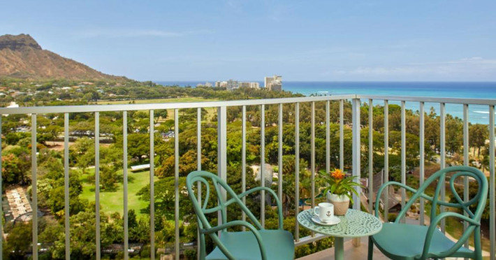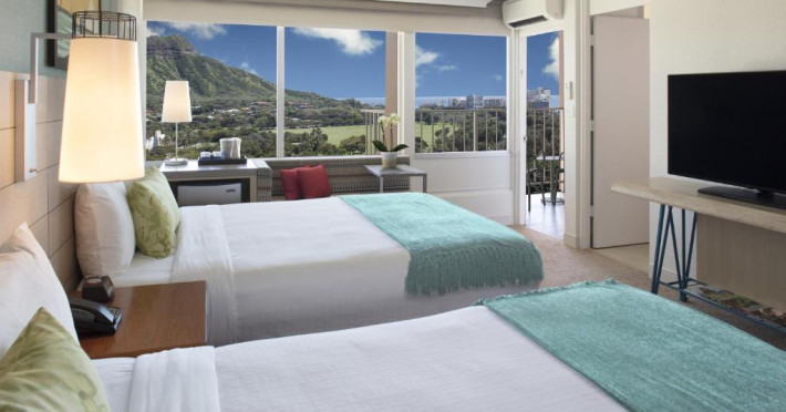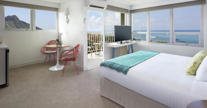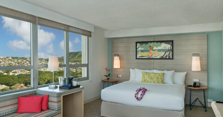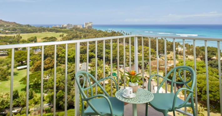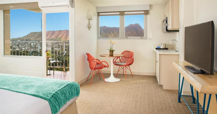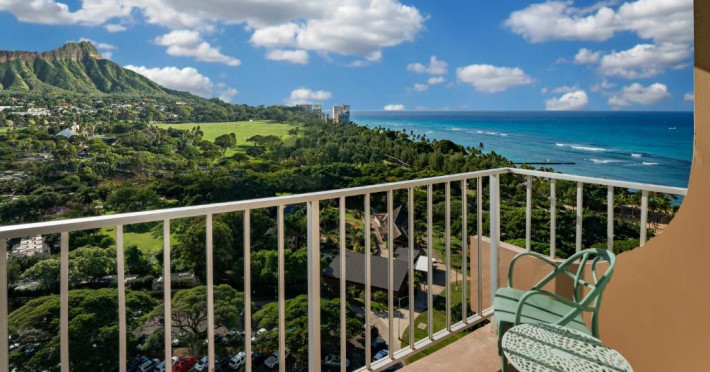 Situat la o distanță de o stradă de plaja Waikiki, acest hotel are terasă și o piscină in aer liber cu vedere panoramică la craterul Diamond Head. Camerele sunt spațioase și includ un TV cu ecran plat de 49 inch si frigider.