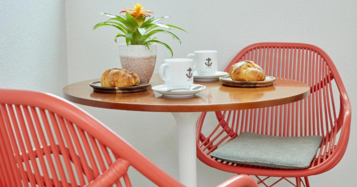 Camerele sunt luminoase și au decor tradițional. Mai multe camere au balcon privat cu vedere la ocean sau la oraș.