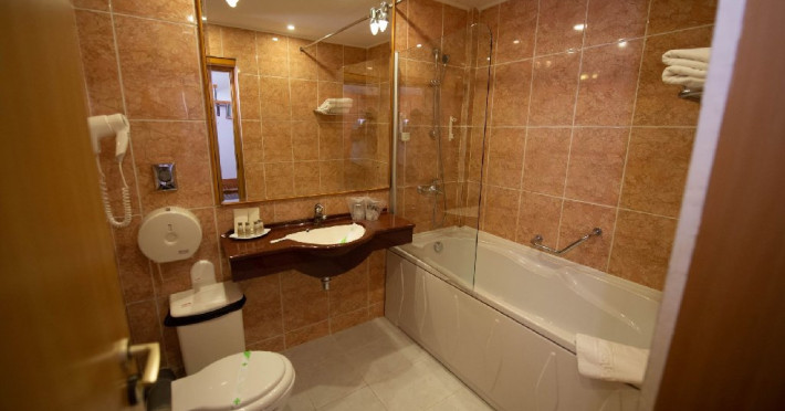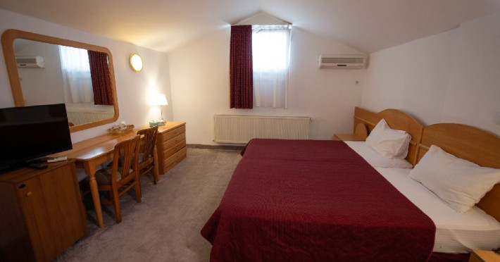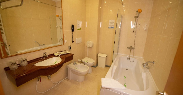 - Dubla - grup sanitar propriu cu cada si uscator de par, sistem audio si telefon in camera si in baie; TV (LCD),cablu, telefon, aer conditionat. Acces cu card eletronic si inchidere automata.