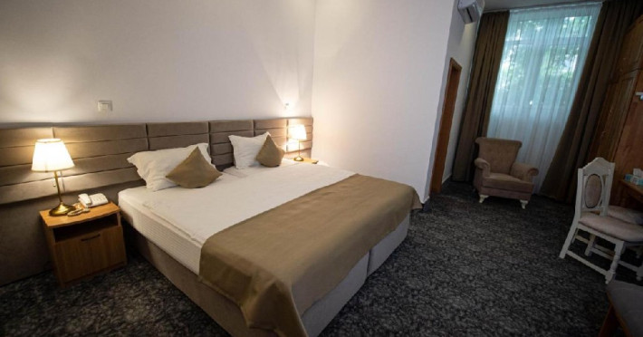 - Junior Suite- este o camera spatioasa, un birou de lucru si o zona de relaxare, ce va permite sa imbinati munca si relaxarea. Dotate cu grup sanitar cu uscator de par, sistem audio si telefon, TV (LCD), cablu, telefon, aer conditionat. Acces cu card eletronic si inchidere automata.