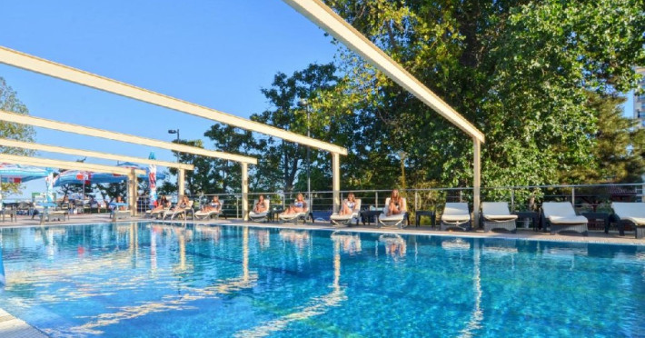 Acesta dispune de restaurant, bar de zi, terasa, sala de conferinte, teren de sport, gradina exotica, piscina descoperita, parcare proprie gratuita (in limita locurilor disponibile).