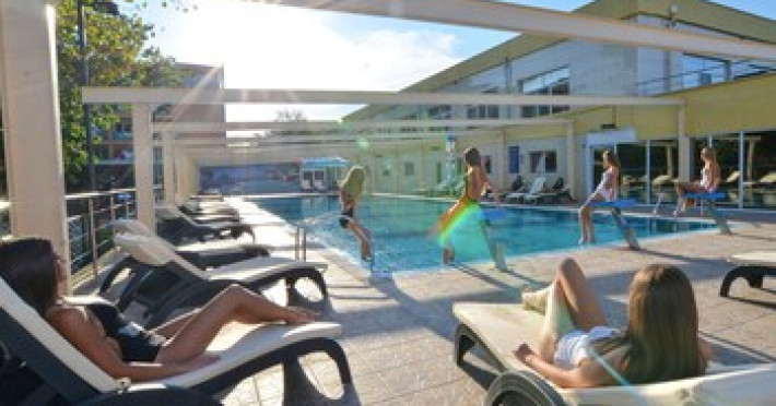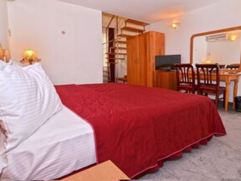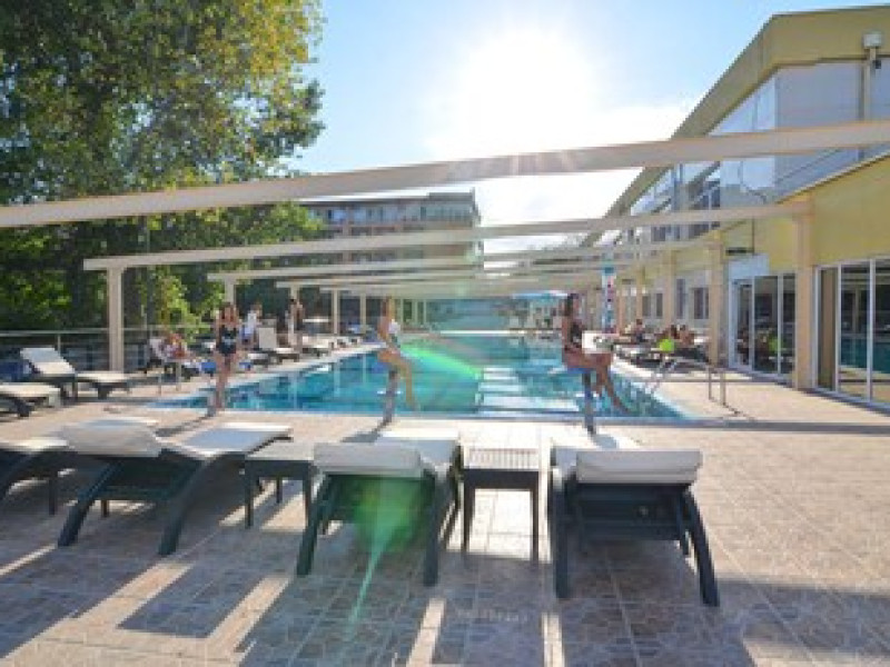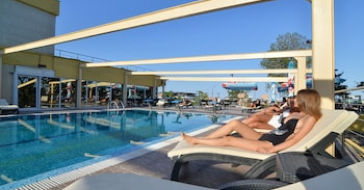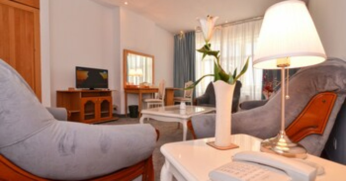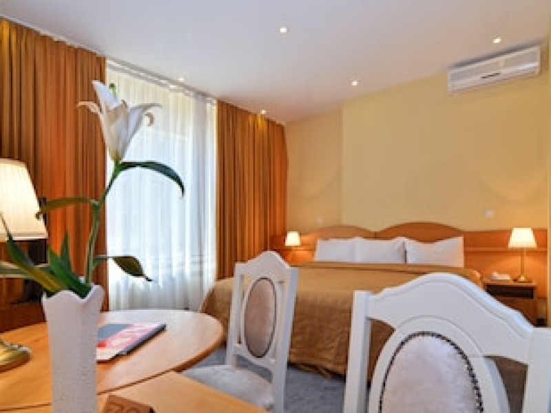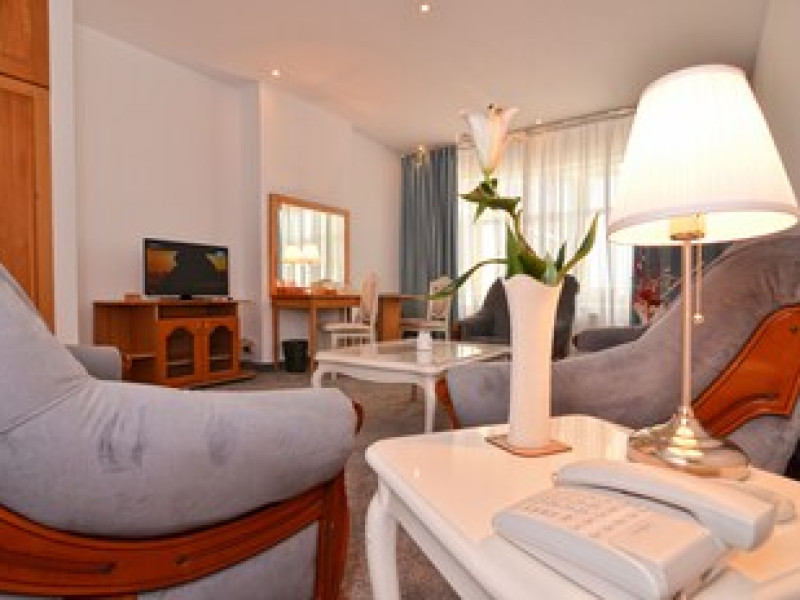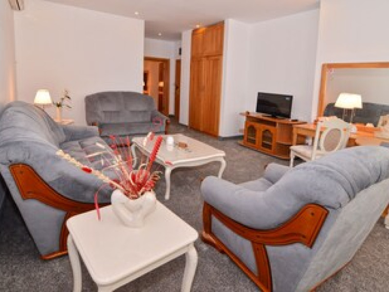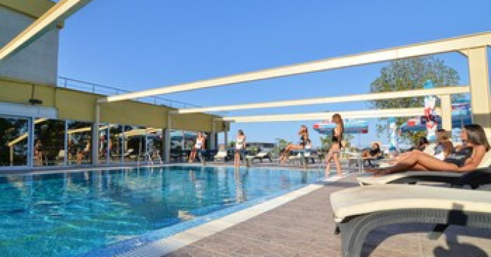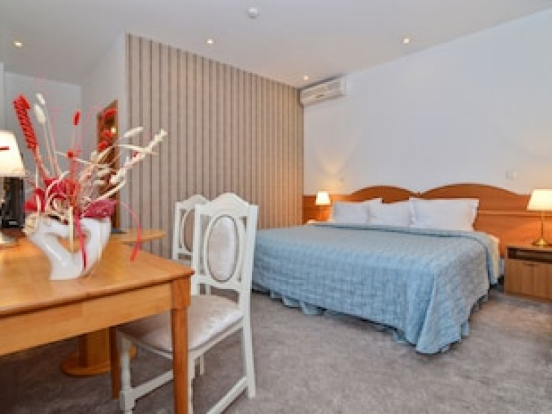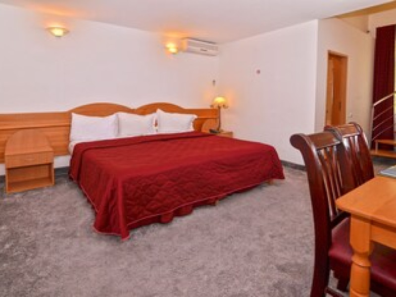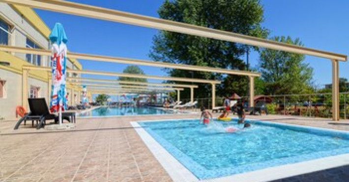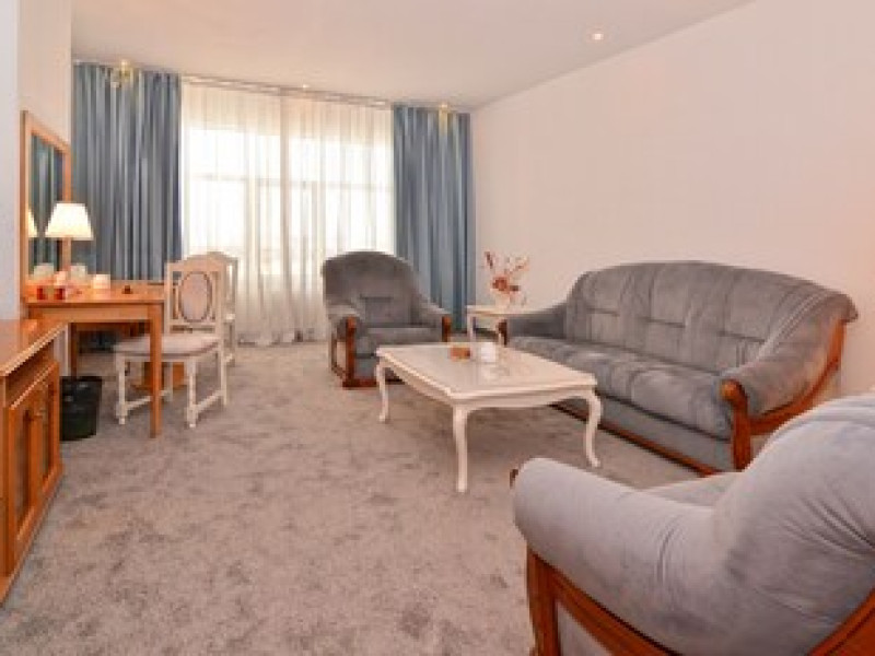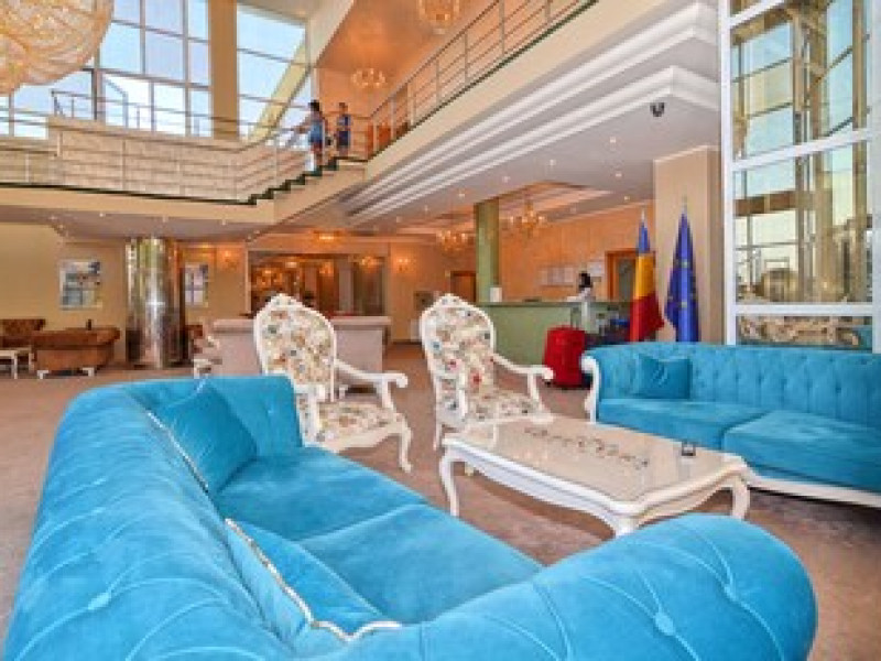 The hotel is located in the heart of Mamaia, only 50 metres away from the Black Sea coast and Lake Siutghiol. It is also just a few minutes away from the tourist, leisure & business areas and shopping districts of Constanta, less than 30 minutes away from the Mihail Kogalniceanu Airport (about 40 km away) and 10 minutes away from the port at Constanta. Henri Coanda International Airport is approximately 260 km from the hotel. This beach hotel was renovated in 2016. There are 68 spacious and individually decorated luxurious rooms, suites and duplexes with exquisite fabrics. The premises are air-conditioned and guests are welcomed in a lobby with 24-hour reception and check-out services. Facilities include a hotel safe, cloakroom and lift access.Guests can wine and dine in the café, bar and restaurant. The hotel has a fully-equipped business and conference centre. Wireless Internet access, a laundry service and a car park are further facilities on offer to guests during their stay. Guests can enjoy a good nights rest on their twin or king-size bed. Among the facilities are an international and local direct dial telephone, which also has a room-to-room call facility and voicemail. There is a safe deposit box in every room, as well as a network Internet connection, TV with cable channels, a radio, and a sound system in the en suite bathrooms, which also have a shower, bath and hairdryer. Further standard facilities in each room include a minibar, air conditioning, and a terrace. The hotel has a semi-olympic outdoor swimming pool for adults and a pool for children.The outdoor pool opens on 15.06.2023Datorita dinamicitatii domeniului disponibilitatea ofertelor se modifica de la un moment la altul. De aceea ofertele sunt valabile in limita locurilor disponibile. Agentia nu este responsabila pentru eventualele neconcordante care pot aparea intre informatiile privind tarifele si alte detalii din site si informatiile primite in agentie. In aceste cazuri vor avea prioritate, intotdeauna, informatiile primite in agentie.