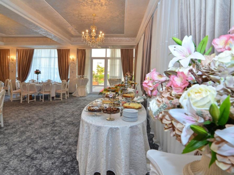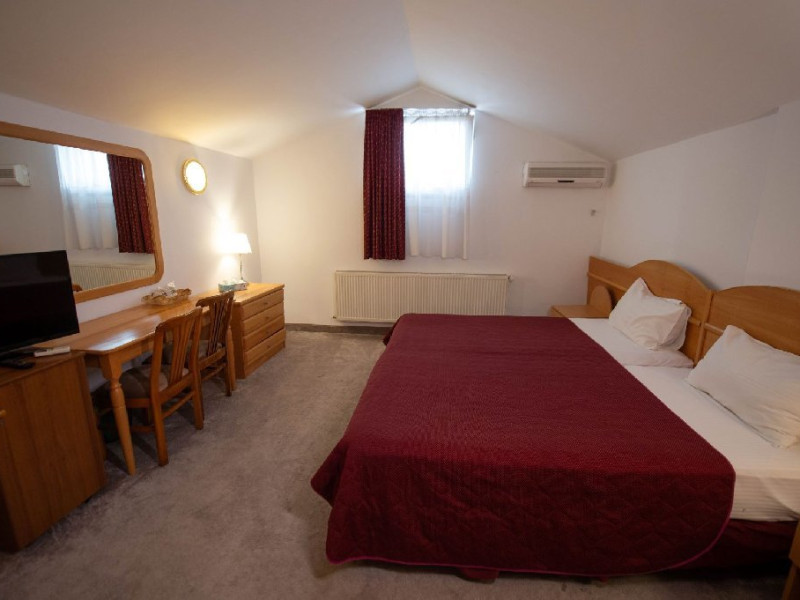HOTELUL QUEEN VERA NU MAI DETINE PLAJA PRIVATA!!! Hotelul este situat la jumatatea statiunii Mamaia la 10 metri de plaja, chiar pe faleza. Este format din parter si etajul 1. Dotari hotel: 5 Apartamente care sunt formate din: living si dormitor, in living 2 paturi twin, in dormitor un pat matrimonial, tv, minibar,aer conditionat, baie cu dus, fotolii si un dormitor foarte mare cu tv,aer conditionat, minibar, baie cu cada , uscator de par, seif. Apartamentele sunt singurele camere cu vedere la mare si sunt situate la etajul 1 . 9 Duplexuri care sunt numai la etajul 1.Sunt formate din 2 camere legate intre ele printr-o scara interioara intrarea facundu-se prin camera de la parter.Fiecare camera este dotata cu tv, minibar, aer conditionat, seif, uscator de par, baia sa proprie cu cada. 2 Junior Suite care este o camera foarte mare spatioasa , are o canapea fixa de 2 locuri si 2 fotolii ca un loc de relaxare si un pat mare matrimonial, tv, minibar,baie cu cada,aer conditionat, seif, uscator de par. 33 Twin si matrimoniale care sunt situate la parter si la etajul 1.In camerele twin paturile se pot unii si se transforma in matrimoniala fara problema.Fiecare camera are in dotare tv, aer conditionat, minibar, baie cu cada,seif,uscator de par. Hotelul NU are balcoane din constructie. In tariful camerei este inclusa c/v micului dejun care se serveste in regim bufet suedez de la 20 persoane cazate in sus in hotel, daca sunt mai putini cazati in hotel se serveste in 3 variante. In restaurant se poate servii masa a la carte fisa cont de 75 lei/pers/ zi Piscina exterioara este dotata cu sezlonguri, saltele,umbrele si masute, cu acces gratuit penru turistii hotelului, in limita disponibiliatii. Internet wifi in intreg complexul. Parcarea este gratuita in limita locurilor disponibile. Facilitati copii in camera dubla/junior suite cu 2 adulti: - intre 0-6.99 ani gratuitate la cazare si mic dejun fara pat suplimentar ; al doilea copil achita micul dejun - intre 7-10 ani - achita mic dejun, fara pat suplimentar asigurat - intre 10-18 ani - achita mic dejun si pat suplimentar, conform sistemului de rezervari Tarifele pentru Apartament si Duplex sunt pentru 4 persoane (cazare si mic dejun) NU se accepta animale de companie!Datorita dinamicitatii domeniului disponibilitatea ofertelor se modifica de la un moment la altul. De aceea ofertele sunt valabile in limita locurilor disponibile. Agentia nu este responsabila pentru eventualele neconcordante care pot aparea intre informatiile privind tarifele si alte detalii din site si informatiile primite in agentie. In aceste cazuri vor avea prioritate, intotdeauna, informatiile primite in agentie.