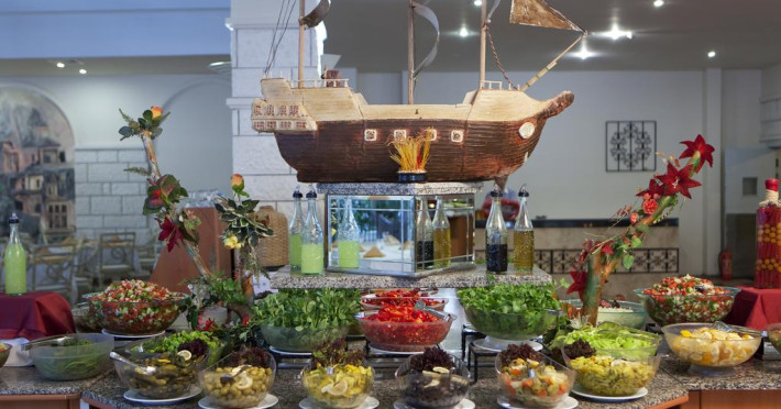 La Queen`s Park Le Jardin oaspeții au la dispoziție 4 restaurante unde pot savura mâncăruri delicioase, în stil bufet sau à la carte. Preparate din bucătăria turcească și italiană așteaptă să fie degustate în fiecare zi. Masa poate fi servită atât în interior, cît si în aer liber, pe terasă, în funcție de vreme. 4 baruri, dintre care unul la piscină, sunt disponibile cu o ofertă variată de băuturi răcoritoare și alcoolice. În cadrul proprietății există și un snack bar care servește băuturi și gustări. Pentru cei cu anumite nevoi de nutriție, Queen`s Park Le Jardin oferă meniuri pentru diete speciale.