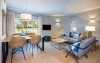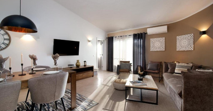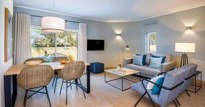 Dotari camera: Complexul ofera apartamente, bungalouri si vile, toate amenajate in stil traditional algarvian, cu finisaje luminoase si spatii generoase. Unitatile dispun de zona de relaxare, Wi-Fi, aer conditionat (in anumite unitati), seif (contra cost) si terasa sau balcon. Chicinetele sau bucatariile sunt complet utilate, incluzand frigider, plita, cuptor sau microunde, aparat de cafea si ustensile de bucatarie. Baia este dotata cu cada sau dus si articole de toaleta. Bungalourile si vilele ofera un plus de intimitate, fiind ideale pentru familii.