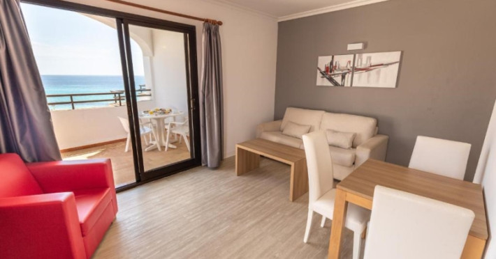 The hotel R2 Cala Millor Beach Apartment is located directly on the sea in the vicinity of a sandy beach. The nearest restaurants and bars can be reached in a few minutes on foot. The city centre is only around 100 m away. Shops are right on your dooThe hotel R2 Cala Millor Beach Apartment is located directly on the sea in the vicinity of a sandy beach. The nearest restaurants and bars can be reached in a few minutes on foot. The city centre is only around 100 m away. Shops are right on your doorstep, a supermarket is around 100 m away. There is a shuttle between the hotel and the airport (for a fee). Nearby there is a disco which offers entertainment in high season. On the beach are beach towels available. Near the beach there is a promenade where you can go for a stroll. The hotel is equipped with a reception, a lobby, Wi-Fi (for a fee), a lift as well as a first aid kit. Furthermore, you can relax outdoors on a terrace. You can store your valuables in the safe (extra fee), and your luggage in the hotels storage room. There is also a laundry service available at an additional cost to customers as well as an ironing service. If necessary, you can contact the medical centre (for a fee). If you want to explore the holiday region, you can use the car and motorbike rental service close to the hotel. At the hotel reception, tickets are offered for excursions in the area. In your hotel, a lot of focus is placed on sustainability. This includes among others the hotels own recycling bins. Due to its barrier-free facilities the hotel is also suitable for wheelchair users. Catering Breakfast is offered from the buffet. Distances Nearest town: approximately at 70 km Airport: approximately at 60 km Taxi rank: approximately at 100 m Port: approximately at 1,5 km Distance to the sea: approximately at 10 m Nearest doctor: approximately at 200 m Nearest dentist: approximately at 800 m Pharmacy: approximately at 100 m Hospital: approximately at 70 km Nearest bank: approximately at 50 m Tourist information: approximately at 150 m Dive shop: approximately at 1 kmDatorita dinamicitatii domeniului disponibilitatea ofertelor se modifica de la un moment la altul. De aceea ofertele sunt valabile in limita locurilor disponibile. Agentia nu este responsabila pentru eventualele neconcordante care pot aparea intre informatiile privind tarifele si alte detalii din site si informatiile primite in agentie. In aceste cazuri vor avea prioritate, intotdeauna, informatiile primite in agentie.