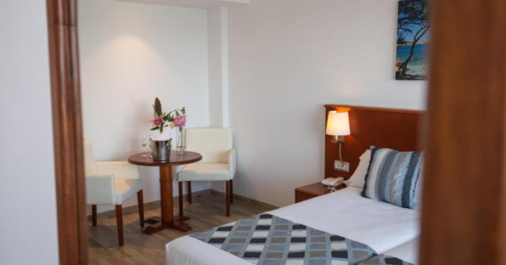 The hotel R2 VERONICA BEACH HOTEL is located directly on the sea in the vicinity of a sandy beach. The nearest bars and restaurants are located directly next to the building. The old town is also just a a few steps away. Shops are right on your doorsThe hotel R2 VERONICA BEACH HOTEL is located directly on the sea in the vicinity of a sandy beach. The nearest bars and restaurants are located directly next to the building. The old town is also just a a few steps away. Shops are right on your doorstep, a supermarket is around 100 m away. There is a shuttle between the hotel and the airport (for a fee). Nearby there is a disco which offers entertainment in high season. The beach is patrolled by a lifeguard. Here, there are beach towels available. Cold drinks are served at the beach bar. There is a promenade where you can take leisurely walks. The air-conditioned hotel has a reception (check-in is possible around the clock), a lobby bar, Wi-Fi (for a fee), a lift, a first aid kit as well as a TV lounge with satellite TV. In the outdoor area you will find a pool that is open seasonally, where sun loungers and pool towels are available for free. For children there is also a childrens pool. Furthermore, you can relax outdoors on the sun terrace. You can store your valuables in the safe (extra fee), and your luggage in the hotels storage roomn. There is also a laundry service available at an additional cost to customers as well as an ironing service. If necessary, you can contact the medical centre (for a fee). Guests at the accommodation can get a wake-up call from the hotel personnel. If you want to explore the holiday region, you can use the car and motorbike rental service close to the hotel. At the reception, tickets are offered for excursions in the area. In your hotel, a lot of focus is placed on sustainability. This includes the hotels own recycling bins and ecological meals. The hotel requires that all guests pay a deposit upon arrival. Due to its barrier-free facilities the hotel is also suitable for wheelchair users. Catering As catering services the hotel offers all-inclusive, half board, full board and breakfast only. Breakfast is offered from the buffet (extras on request). Enjoy your lunch as a set meal (extras on request). Dinner is also served as a buffet (extras on request). For the meals, there are a restaurant with terrace (calorie-reduced and gluten-free dishes) and the cafeteria as well as the pool bar. For dinner, guests are asked to wear appropriate clothing in the restaurant. Distances Nearest town: approx. 70 km Airport: approx. 60 km Taxi rank: approx. 100 m Port: approx. 1,5 km Distance to the sea: approx. 10 m Nearest doctor: approx. 200 m Nearest dentist: approx. 800 m Pharmacy: approx. 100 m Hospital: approx. 70 km Golf course: approx. 5 km Nearest bank: approx. 50 m Tourist information: approx. 150 m Dive shop: approx. 1 km Sports amp; Leisure There is the option to play billiards. In terms of adult entertainment, live music is presented on certain days.Datorita dinamicitatii domeniului disponibilitatea ofertelor se modifica de la un moment la altul. De aceea ofertele sunt valabile in limita locurilor disponibile. Agentia nu este responsabila pentru eventualele neconcordante care pot aparea intre informatiile privind tarifele si alte detalii din site si informatiile primite in agentie. In aceste cazuri vor avea prioritate, intotdeauna, informatiile primite in agentie.