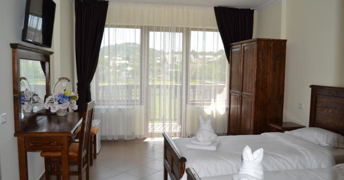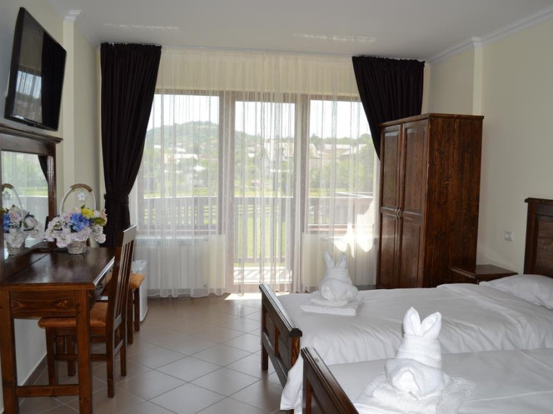 Hotelul Rabbit Bran este destinaCia perfect atA?t pentru afaceri cA?t Ci pentru agreement. Situat in frumoasa zon a Moieciului de Jos in apropierea Castelului Bran renumit datorit legendei contelui Dracula; hotelul Rabbit Bran ofer clienCilor si camere spaCioase Ci comfortabile cu vedere la superbi MunCi CarpaCi. Camerele sunt mobilate cu mobilier in stilul clasic local din lemn masiv, au balcoane si terase de unde puteti admira privelistea inconjuratoare;sunt prevazute cu televizor smart led, access la internet prin wifi, minibar, uscator de par, articole de toaleta.Datorita dinamicitatii domeniului disponibilitatea ofertelor se modifica de la un moment la altul. De aceea ofertele sunt valabile in limita locurilor disponibile. Agentia nu este responsabila pentru eventualele neconcordante care pot aparea intre informatiile privind tarifele si alte detalii din site si informatiile primite in agentie. In aceste cazuri vor avea prioritate, intotdeauna, informatiile primite in agentie.
