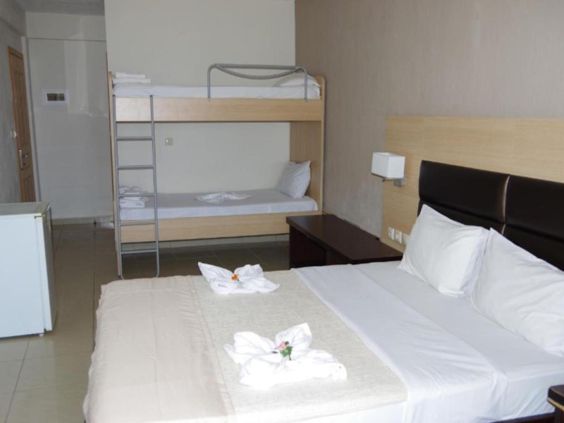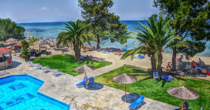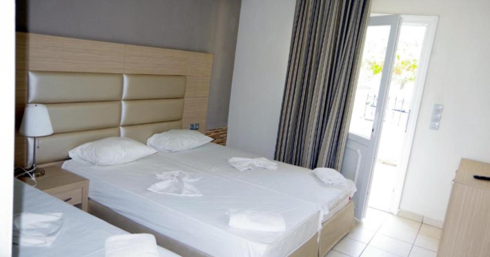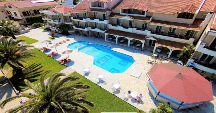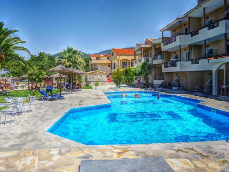 The hotel offers following facilities and services reception (operates limited hours), WiFi, restaurant, swimming pool, children's pool and pool bar. All rooms have air conditioning, satellite TV, fridge, safety box, bathroom with bathtub or shower, WC and balcony or terrace. ** Important: Reception with limited opening hours. When booking this hotel you are requested to advise your flight number and arrival time.** ** Please note that some of the above facilities may be closed due to weather, seasonal conditions.** Address: Skala Rachoniou, 64002 Thassos, Greece.Localizare