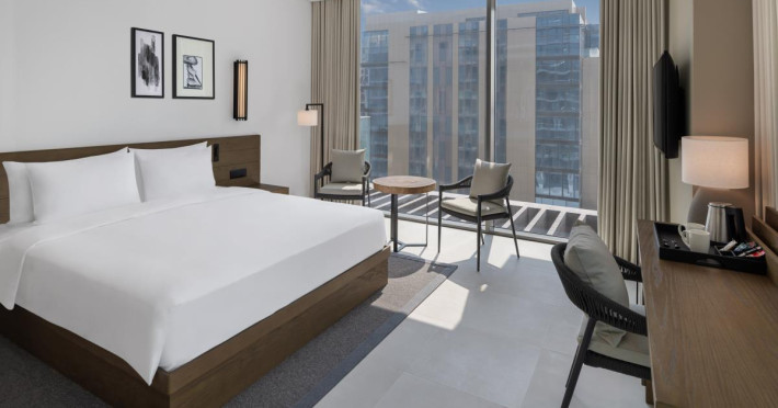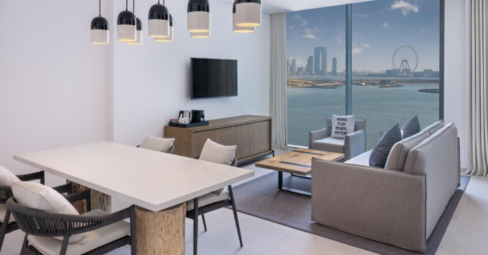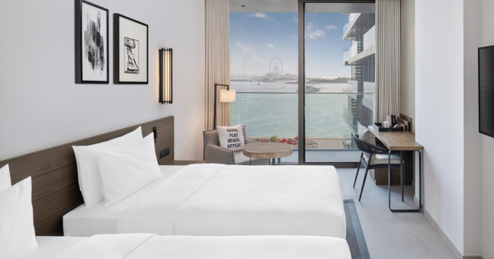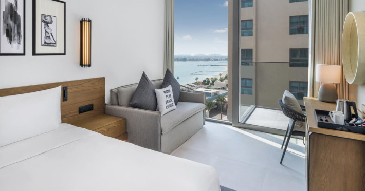 Situated right on the Palm West Beach, our resort boasts incredible city and beach views and easy access to the beach. Whether you’re traveling for business or leisure we have you covered. Explore our on-site restaurants, bars, fitness center, spa, and Kid’s Club. Take it easy by the pool or at our full-service private beach. If you’re traveling for business, take advantage of our three fully equipped meeting rooms.Unwind in one of our 389 contemporary rooms or suites, each with floor-to-ceiling windows for plenty of daylight and your own private balcony to enjoy the views. Each of our rooms and suites feature modern amenities including free Wi-Fi, air conditioning, and comfortable, stylish furnishings to make your stay in Palm Jumeirah unforgettable.Meetings & EventsLocated on the first floor of the hotel, our three state-of-the-art meeting rooms feature floor-to-ceiling windows for plenty of natural light, the latest audiovisual equipment, free Wi-Fi, and meeting packages to complement your event, big or small. Our two meeting rooms can be combined for larger events for up to 70 people, and each meeting room offers a variety of set-ups to meet your needs.Palm West Beach is one of the newest and trendiest beach front promenades in Dubai located on Palm Jumeirah, with beach clubs, restaurants and nightlife spots and stunning views of the Dubai skyline. Conveniently located, the Radisson Beach Resort Palm Jumeirah is just a 5-minute walk to the Nakheel Shopping Mall, and a short distance to other major attractions.Situated right on the Palm West Beach, our resort boasts incredible city and beach views and easy access to the beach. Whether you’re traveling for business or leisure we have you covered. Explore our on-site restaurants, bars, fitness center, spa, and Kid’s Club. Take it easy by the pool or at our full-service private beach. If you’re traveling for business, take advantage of our three fully equipped meeting rooms.Unwind in one of our 389 contemporary rooms or suites, each with floor-to-ceiling windows for plenty of daylight and your own private balcony to enjoy the views. Each of our rooms and suites feature modern amenities including free Wi-Fi, air conditioning, and comfortable, stylish furnishings to make your stay in Palm Jumeirah unforgettable.Meetings & EventsLocated on the first floor of the hotel, our three state-of-the-art meeting rooms feature floor-to-ceiling windows for plenty of natural light, the latest audiovisual equipment, free Wi-Fi, and meeting packages to complement your event, big or small. Our two meeting rooms can be combined for larger events for up to 70 people, and each meeting room offers a variety of set-ups to meet your needs.Palm West Beach is one of the newest and trendiest beach front promenades in Dubai located on Palm Jumeirah, with beach clubs, restaurants and nightlife spots and stunning views of the Dubai skyline. Conveniently located, the Radisson Beach Resort Palm Jumeirah is just a 5-minute walk to the Nakheel Shopping Mall, and a short distance to other major attractions.