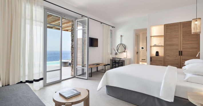 Această proprietate este la 8 minute pe jos față de plajă. Radisson Blu Euphoria Resort, Mykonos se află in Kalo Livadi, la 150 m de plaja Kalo Livadi și oferă cazare cu un restaurant, parcare privată gratuită, o piscină in aer liber sezonieră și un bar. Proprietatea are o grădină și un centru de wellness și spa și este la 700 m de plaja Karapetis și la mai puțin de 1 km de plaja Loulos. La cazare există recepție cu program non-stop, room service, un serviciu de transfer de la/la aeroport și WiFi gratuit in intreaga proprietate.