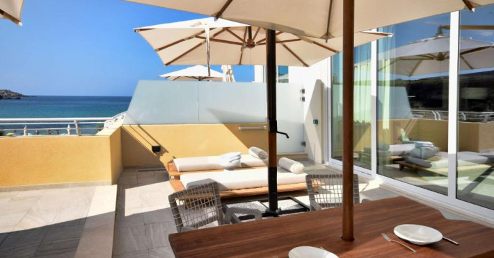 Camerele sunt amenajate moderne și au balcon cu vedere la mare sau la peisajul rural. In timpul verii, tariful include 1 umbrelă de soare și 2 șezlonguri per cameră.
