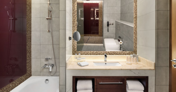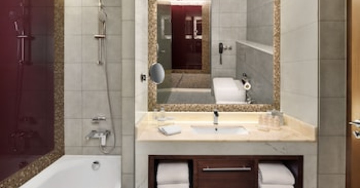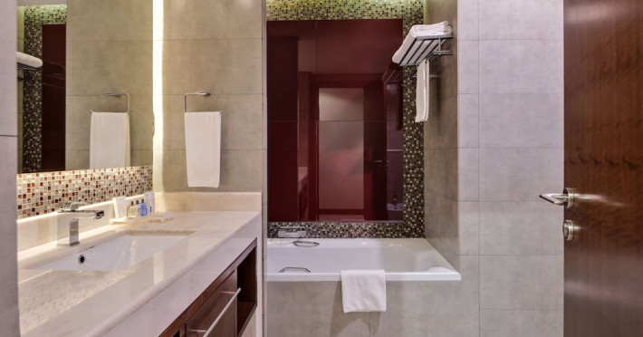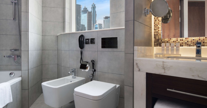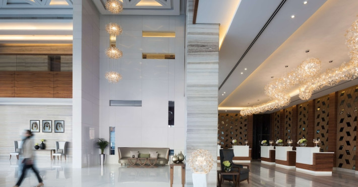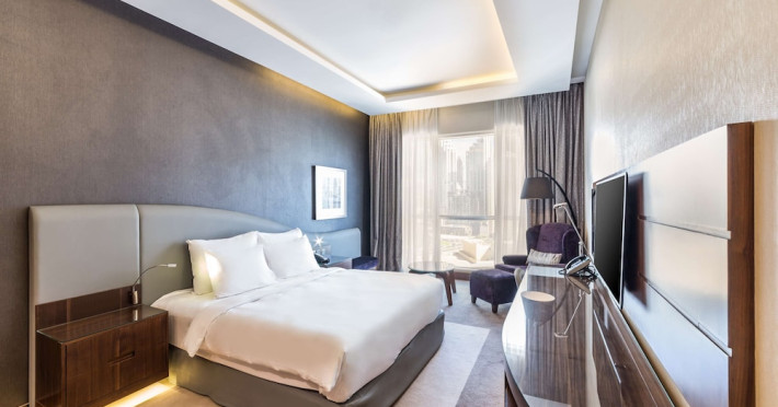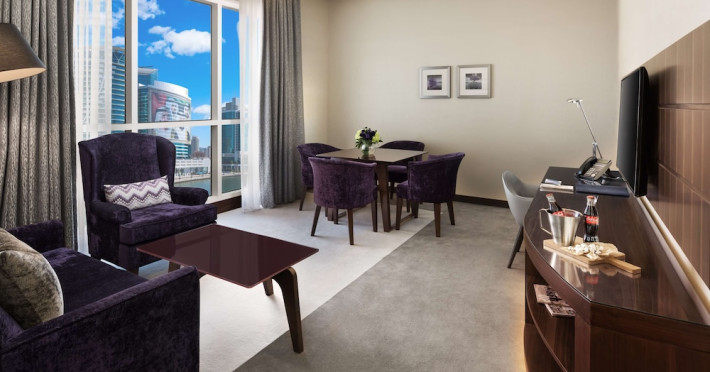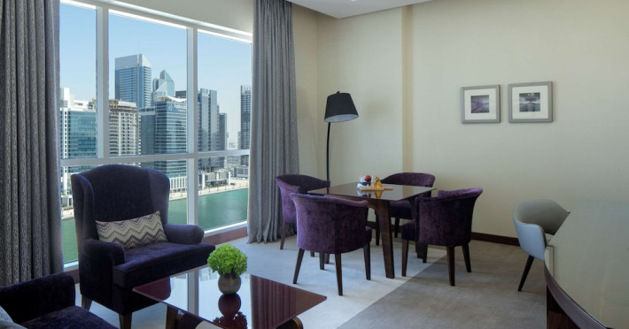 <strong>Property Location</strong><p>In the heart of Dubai, Radisson Blu Hotel Dubai Waterfront is within a 5-minute drive of Burj Khalifa and Dubai Mall. This luxury hotel is 6.4 mi (10.4 km) from BurJuman Mall and 7.7 mi (12.4 km) from City Centre Deira.<br> Distances are displayed to the nearest 0.1 mile and kilometer. <br /> <p>Dubai Water Canal - 0.7 km / 0.5 mi <br /> Dubai Fountain - 1.5 km / 0.9 mi <br /> Souk al Bahar - 1.6 km / 1 mi <br /> Dubai Opera - 1.8 km / 1.1 mi <br /> KidZania - 1.9 km / 1.2 mi <br /> Dubai Water Canal Waterfall - 2.3 km / 1.4 mi <br /> Safa Park - 2.4 km / 1.5 mi <br /> Burj Khalifa - 2.4 km / 1.5 mi <br /> Dubai Aquarium & Underwater Zoo - 2.5 km / 1.5 mi <br /> Emaar Square - 2.5 km / 1.5 mi <br /> Dubai Ice Rink - 2.7 km / 1.7 mi <br /> Dubai Mall - 2.8 km / 1.7 mi <br /> Coca-Cola Arena - 3.3 km / 2 mi <br /> City Walk - 3.7 km / 2.3 mi <br /> Jumeirah Beach - 4.9 km / 3 mi <br /> </p><p>The nearest airports are:<br />Dubai Intl. Airport (DXB) - 15.3 km / 9.5 mi<br /> Sharjah (SHJ-Sharjah Intl.) - 41.4 km / 25.7 mi<br /> Al Maktoum Intl. Airport (DWC) - 50.3 km / 31.2 mi<br /> </p><p></p><br> <strong>Rooms</strong><p>Make yourself at home in one of the 432 air-conditioned rooms featuring minibars and flat-screen televisions. Your pillowtop bed comes with premium bedding. Complimentary wireless internet access keeps you connected, and satellite programming is available for your entertainment. Private bathrooms with shower/tub combinations feature complimentary toiletries and bathrobes.<p> <strong>Dining</strong><p>Enjoy international cuisine at Larder, one of the hotel's 2 restaurants, or stay in and take advantage of the 24-hour room service. Snacks are also available at the coffee shop/cafe. Relax with a refreshing drink from the poolside bar or one of the 2 bars/lounges. Buffet breakfasts are served on weekdays from 6:30 AM to 10:30 AM and on weekends from 6:30 AM to 11 AM for a fee.<p> <strong>Business, Other Amenities</strong> <p>Featured amenities include complimentary wired internet access, a business center, and express check-out. Planning an event in Dubai? This hotel has 10764 square feet (1000 square meters) of space consisting of conference space and meeting rooms. A roundtrip airport shuttle is provided for a surcharge (available 24 hours), and free valet parking is available onsite.<p><strong>Property Location</strong><p>In the heart of Dubai, Radisson Blu Hotel Dubai Waterfront is within a 5-minute drive of Burj Khalifa and Dubai Mall. This luxury hotel is 6.4 mi (10.4 km) from BurJuman Mall and 7.7 mi (12.4 km) from City Centre Deira.<br> Distances are displayed to the nearest 0.1 mile and kilometer. <br /> <p>Dubai Water Canal - 0.7 km / 0.5 mi <br /> Dubai Fountain - 1.5 km / 0.9 mi <br /> Souk al Bahar - 1.6 km / 1 mi <br /> Dubai Opera - 1.8 km / 1.1 mi <br /> KidZania - 1.9 km / 1.2 mi <br /> Dubai Water Canal Waterfall - 2.3 km / 1.4 mi <br /> Safa Park - 2.4 km / 1.5 mi <br /> Burj Khalifa - 2.4 km / 1.5 mi <br /> Dubai Aquarium & Underwater Zoo - 2.5 km / 1.5 mi <br /> Emaar Square - 2.5 km / 1.5 mi <br /> Dubai Ice Rink - 2.7 km / 1.7 mi <br /> Dubai Mall - 2.8 km / 1.7 mi <br /> Coca-Cola Arena - 3.3 km / 2 mi <br /> City Walk - 3.7 km / 2.3 mi <br /> Jumeirah Beach - 4.9 km / 3 mi <br /> </p><p>The nearest airports are:<br />Dubai Intl. Airport (DXB) - 15.3 km / 9.5 mi<br /> Sharjah (SHJ-Sharjah Intl.) - 41.4 km / 25.7 mi<br /> Al Maktoum Intl. Airport (DWC) - 50.3 km / 31.2 mi<br /> </p><p></p><br> <strong>Rooms</strong><p>Make yourself at home in one of the 432 air-conditioned rooms featuring minibars and flat-screen televisions. Your pillowtop bed comes with premium bedding. Complimentary wireless internet access keeps you connected, and satellite programming is available for your entertainment. Private bathrooms with shower/tub combinations feature complimentary toiletries and bathrobes.<p> <strong>Dining</strong><p>Enjoy international cuisine at Larder, one of the hotel's 2 restaurants, or stay in and take advantage of the 24-hour room service. Snacks are also available at the coffee shop/cafe. Relax with a refreshing drink from the poolside bar or one of the 2 bars/lounges. Buffet breakfasts are served on weekdays from 6:30 AM to 10:30 AM and on weekends from 6:30 AM to 11 AM for a fee.<p> <strong>Business, Other Amenities</strong> <p>Featured amenities include complimentary wired internet access, a business center, and express check-out. Planning an event in Dubai? This hotel has 10764 square feet (1000 square meters) of space consisting of conference space and meeting rooms. A roundtrip airport shuttle is provided for a surcharge (available 24 hours), and free valet parking is available onsite.<p>