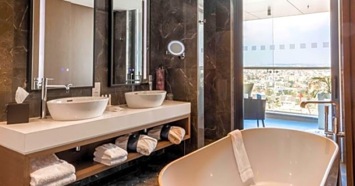 Featuring state-of-the-art technologies and modern amenities, each tasteful room and suite at Radisson Blu Hotel, Larnaca offers a Smart TV with in-room movies, free WiFi and elegant bathroom with rain shower. Suites comprise a separate living room with its own Smart TV. Guests may enjoy magnificent sea and city views from their private balcony. Offering panoramic views over Larnaca, the restaurant serves an abundance of mouthwatering recipes for lunch and dinner, while sumptuous breakfast can be also enjoyed. Set on the 16th floor, the rooftop bar serves signature cocktails and sushi. The fitness centre is equipped with state-of-the-art cardio and weight technology. A well-equipped business centre is also available on the top floor of the hotel.Featuring state-of-the-art technologies and modern amenities, each tasteful room and suite at Radisson Blu Hotel, Larnaca offers a Smart TV with in-room movies, free WiFi and elegant bathroom with rain shower. Suites comprise a separate living room with its own Smart TV. Guests may enjoy magnificent sea and city views from their private balcony. Offering panoramic views over Larnaca, the restaurant serves an abundance of mouthwatering recipes for lunch and dinner, while sumptuous breakfast can be also enjoyed. Set on the 16th floor, the rooftop bar serves signature cocktails and sushi. The fitness centre is equipped with state-of-the-art cardio and weight technology. A well-equipped business centre is also available on the top floor of the hotel.
