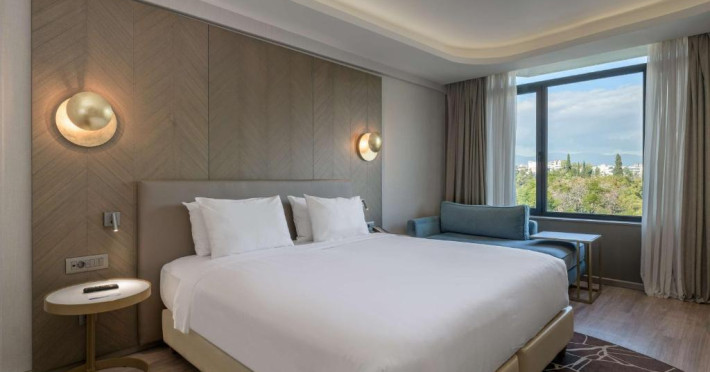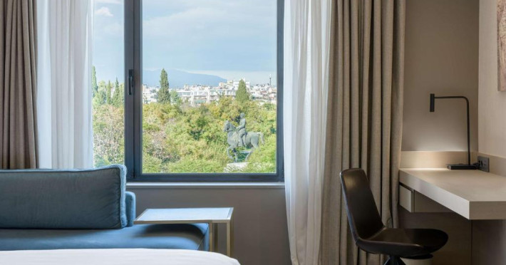 Orientat spre parcul Pedion Areos, Radisson Blu Park Hotel Athens se află la doar 400 m de Muzeul de Arheologie din Atena și la 5 minute pe jos de stația de metrou Victoria. Piscina sezonieră de pe acoperiș oferă vedere la Acropole și Dealul Lykavittos. Centrul de fitness, sauna și hamamul pot fi utilizate gratuit.