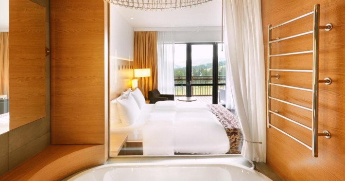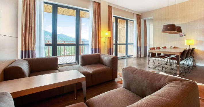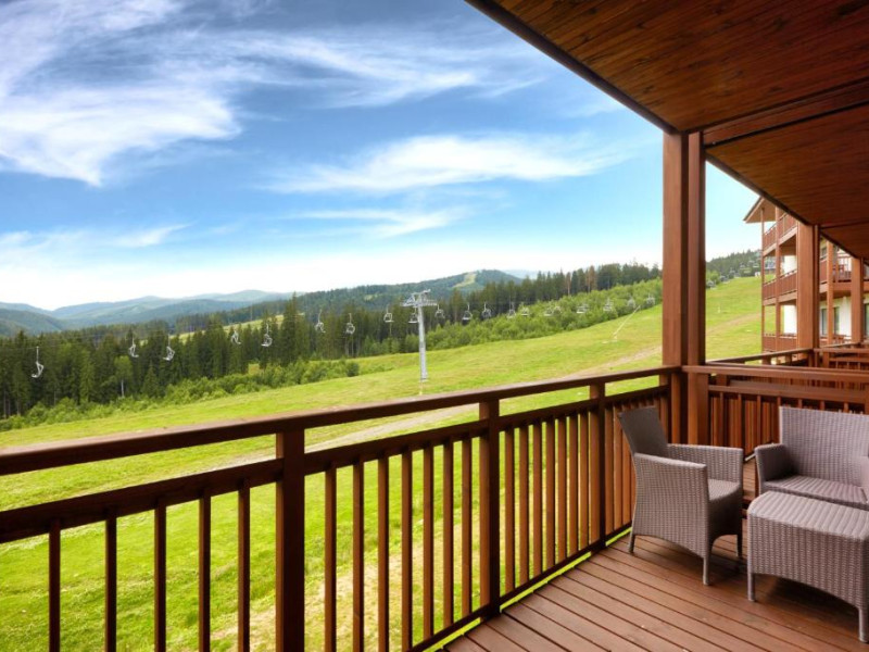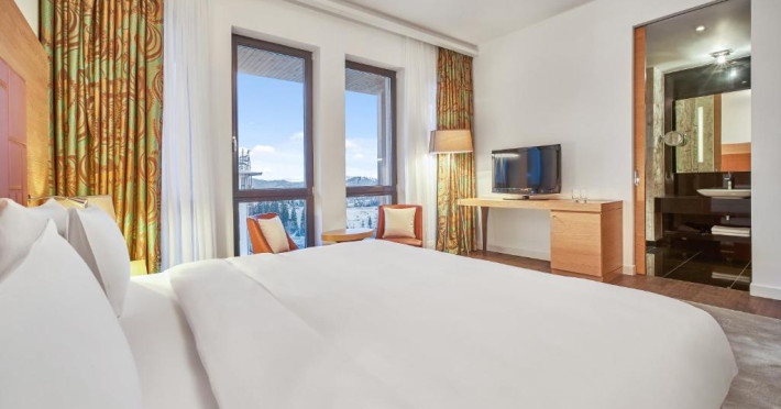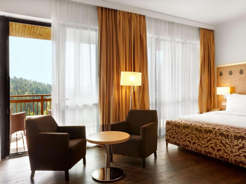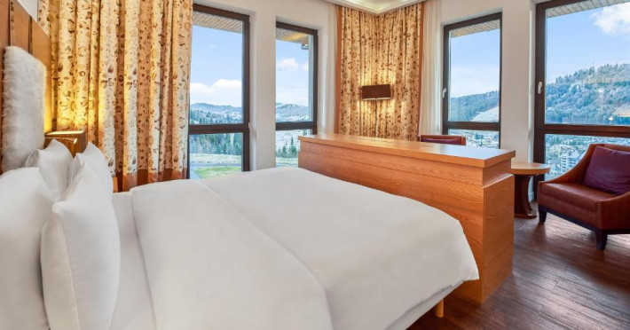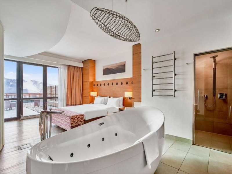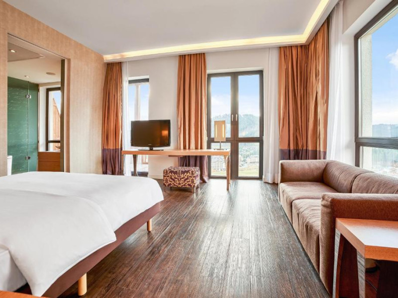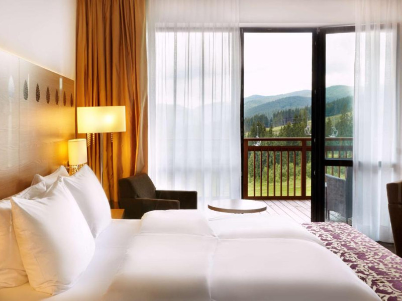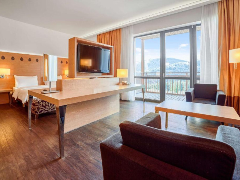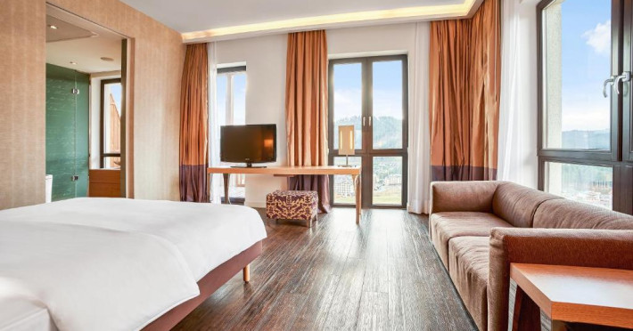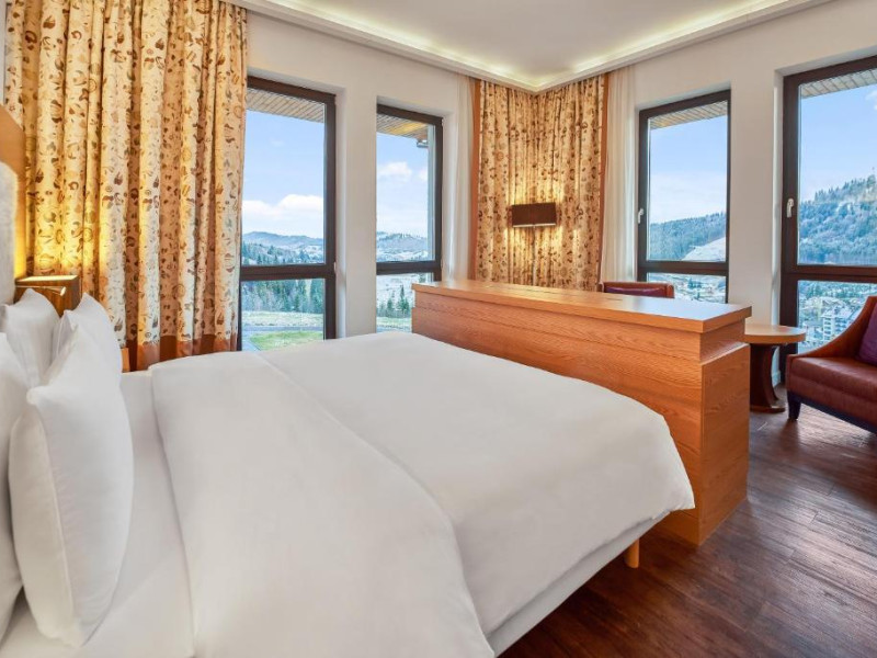 Camerele elegante și spațioase oferă aer condiționat, sunt decorate in stil modern și au un interior luminos, in culori calde. Fiecare cameră include un televizor cu ecran plat, un minibar și o baie privată cu halate de baie și uscător de păr. Balconul are vedere la Muntii Carpati pitoresti.