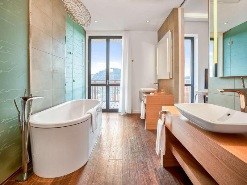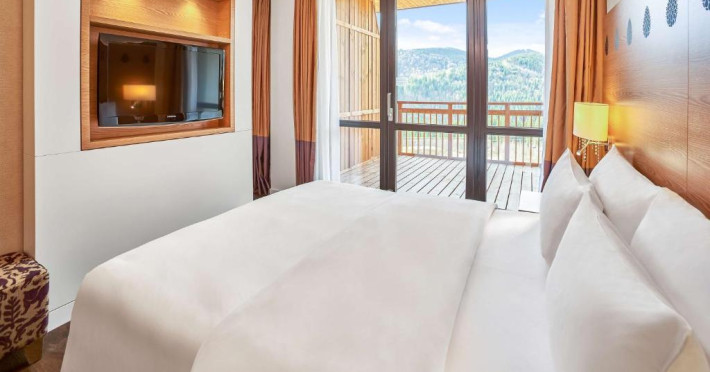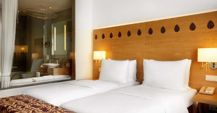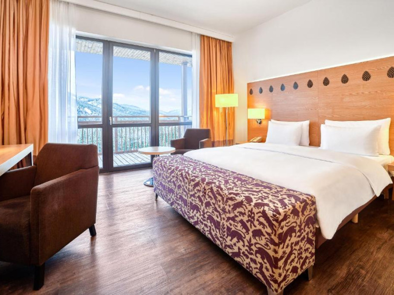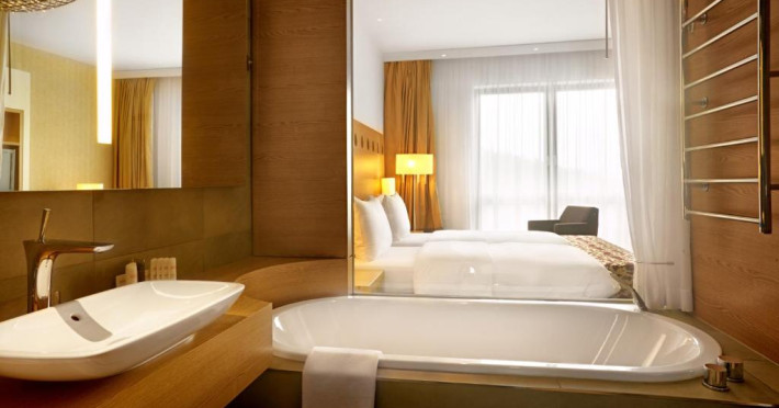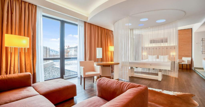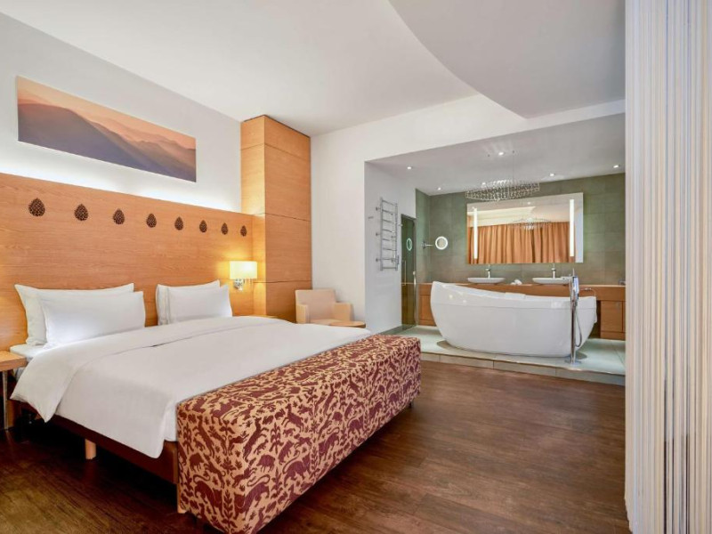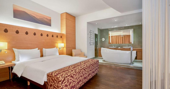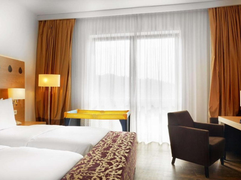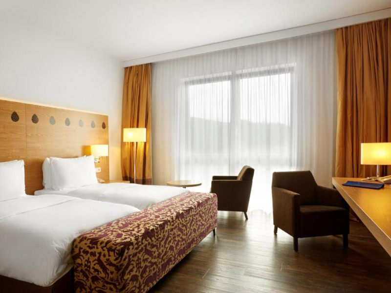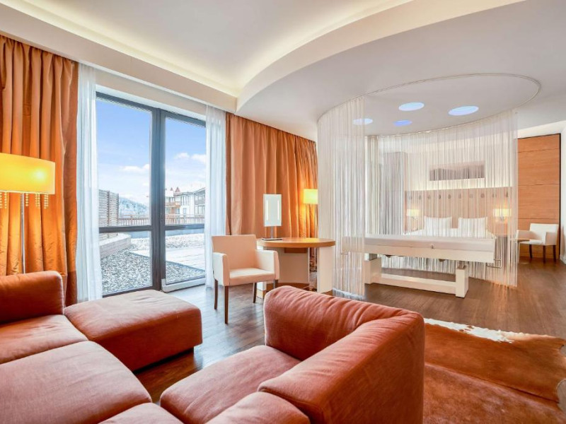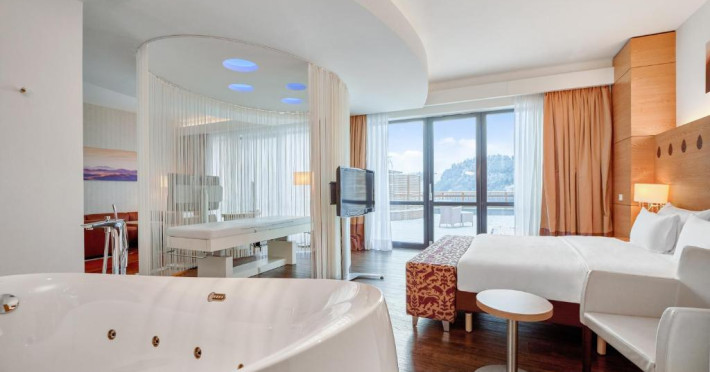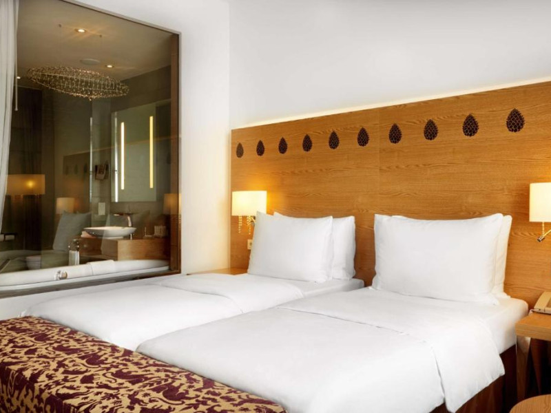 Camerele elegante și spațioase oferă aer condiționat, sunt decorate in stil modern și au un interior luminos, in culori calde. Fiecare cameră include un televizor cu ecran plat, un minibar și o baie privată cu halate de baie și uscător de păr. Balconul are vedere la Muntii Carpati pitoresti.