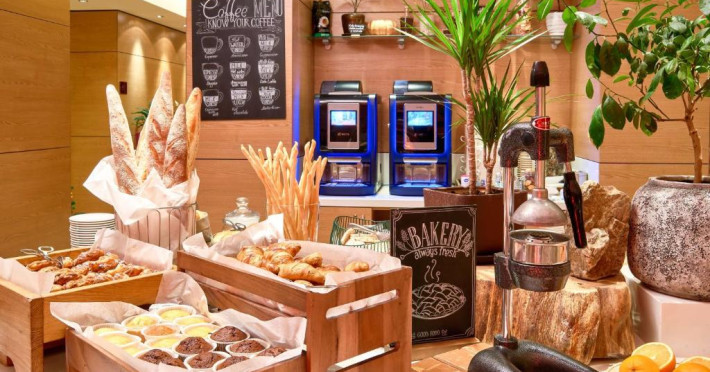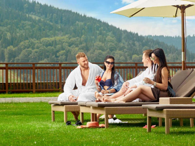 Restaurantul Montblanc serveste preparate ucrainene și europene rafinate, iar restaurantul B-Zone oferă specialităti la grătar. La barul de la spa puteti savura cocktailuri cu un continut redus de calorii, iar lounge barul servește gustări usoare si diverse băuturi.