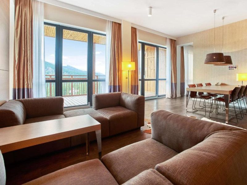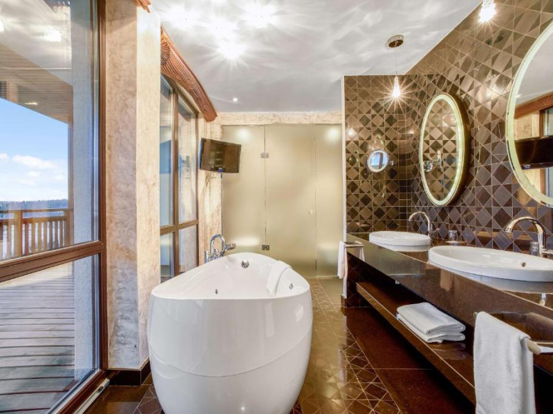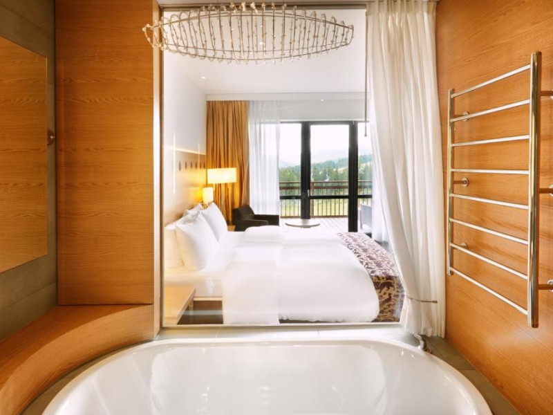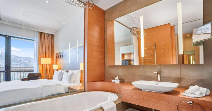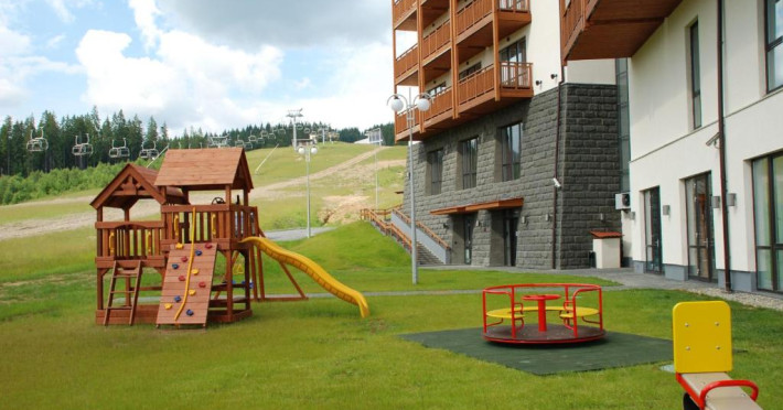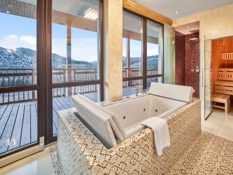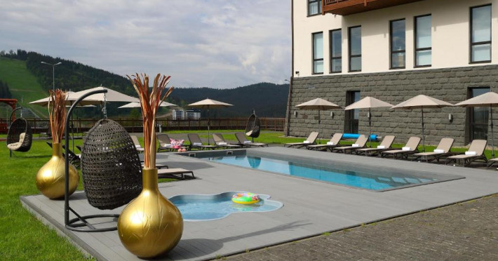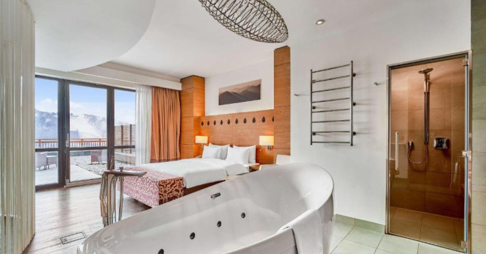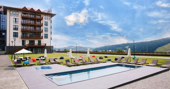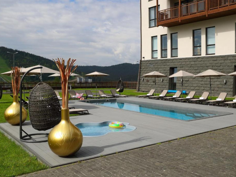 Amplasat in statiunea de schi Bukovel din Muntii Carpati, acest hotel de 5 stele oferă un centru spa, o piscină interioară, o saună si o sală de sport. Există acces Wi-Fi gratuit.