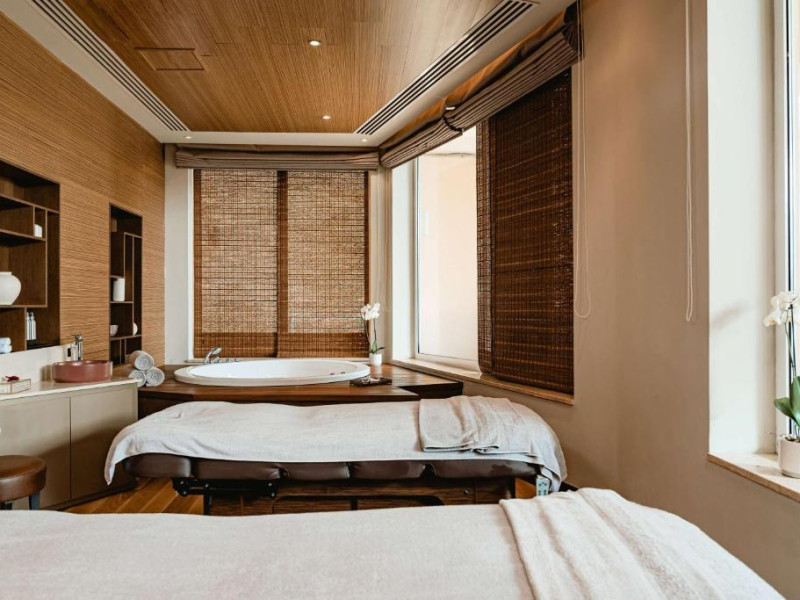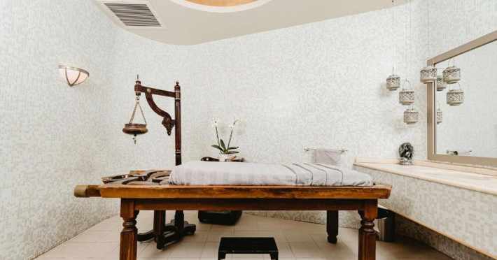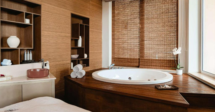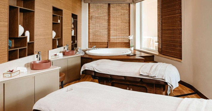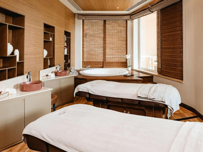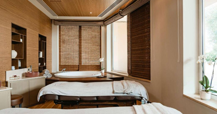 Centrul spa se intinde pe o suprafată de peste 1000 m² si centrul de agrement al complexului oferă vedere uimitoare la mare de la ferestrele sale mari cu vedere la golf.